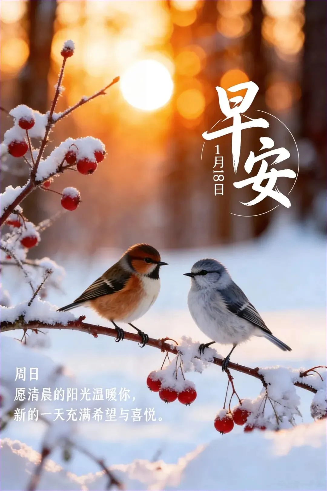 当前位置:首页>美女资讯>1月18日 周日早上好图片祝福语 周日早上好祝福图片 周日早上好祝福语 愿心情愉快,幸福安康