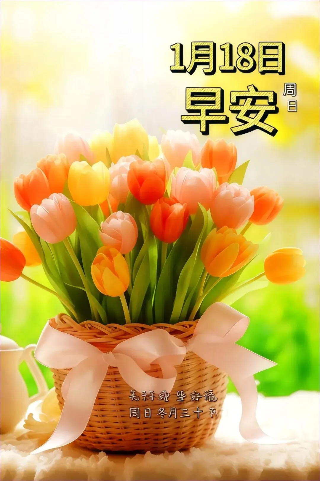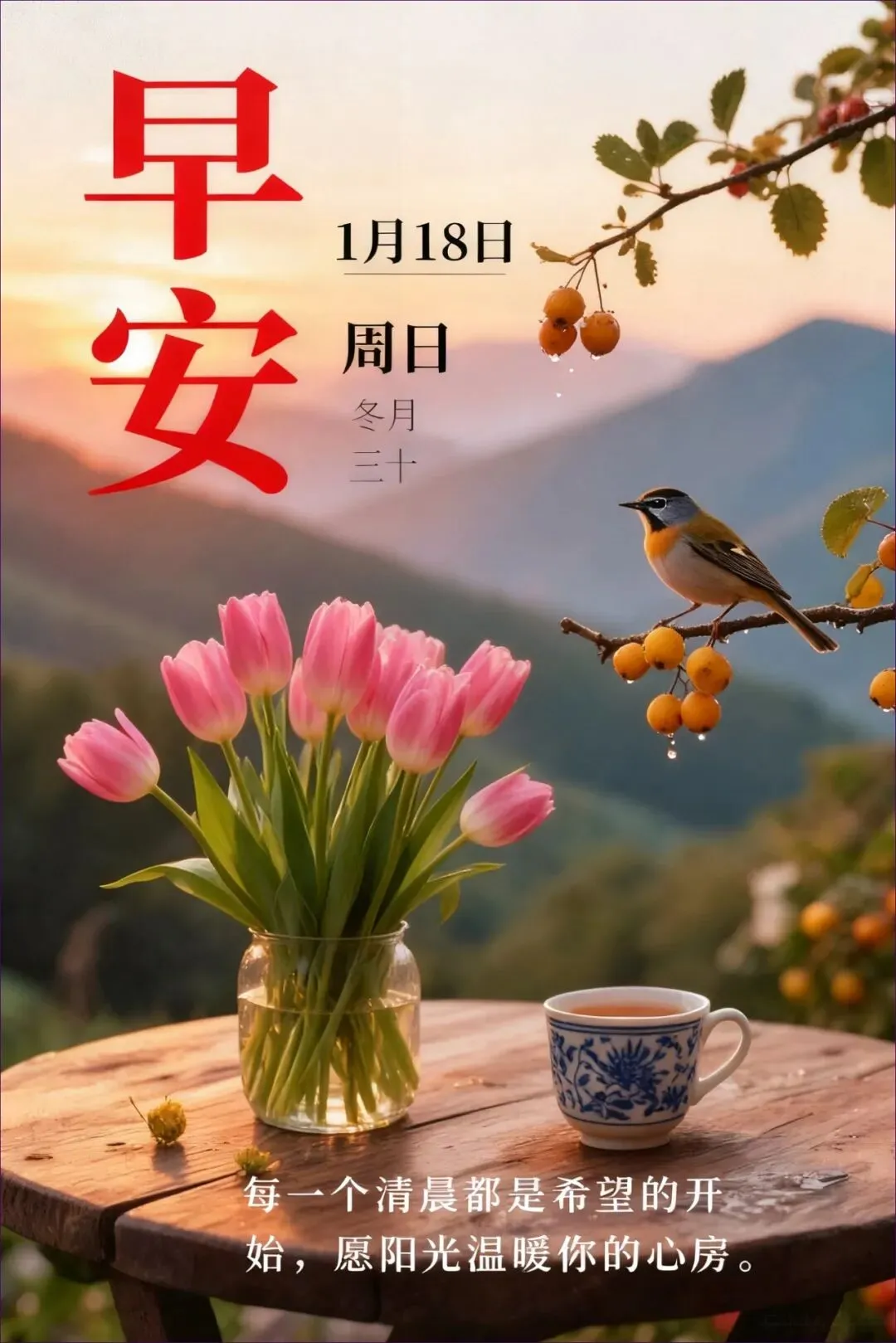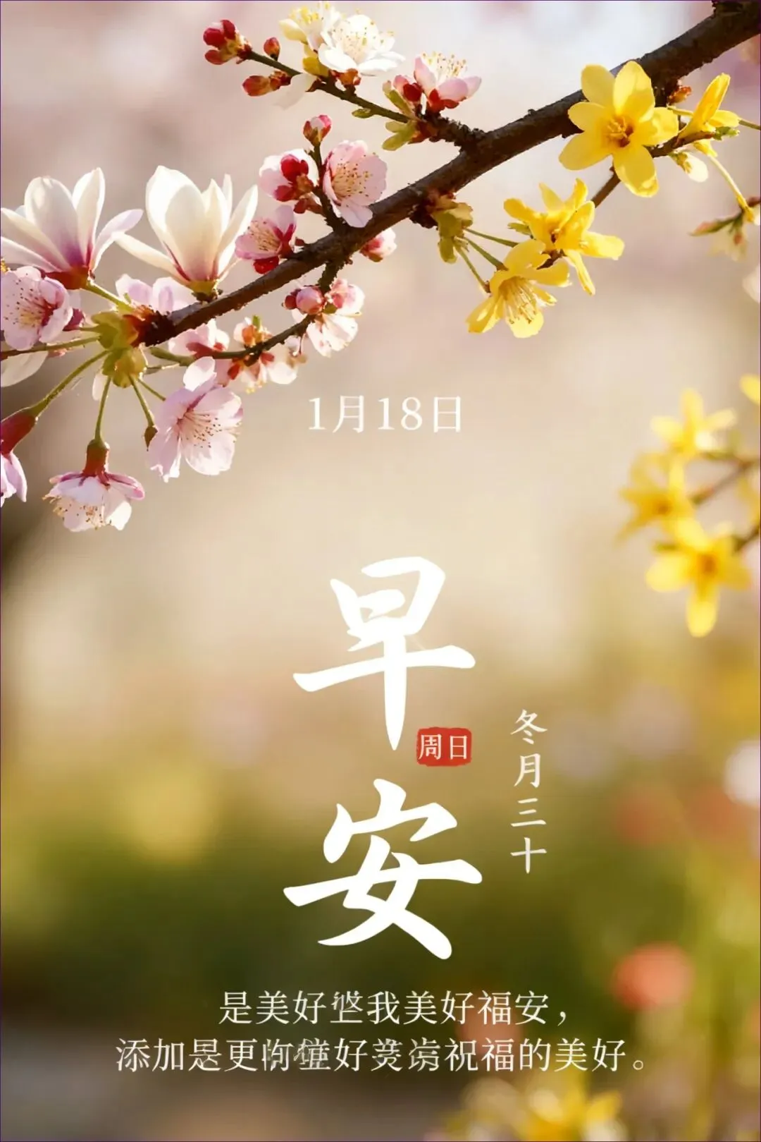 当前位置:首页>美女资讯>1月18日 周日早上好祝福图片 周日早上好祝福语图片最新的 今日最新高清送,冬月三十把温暖锁进屏幕