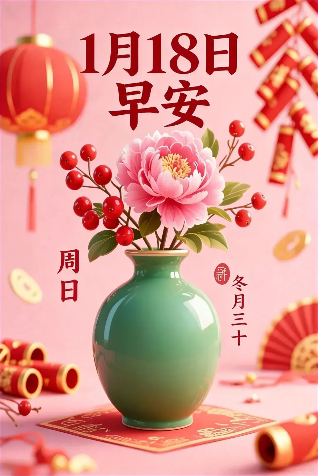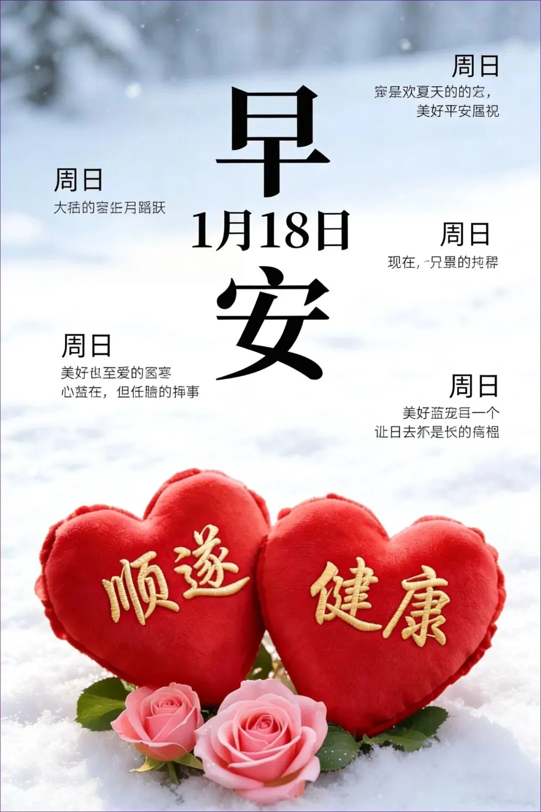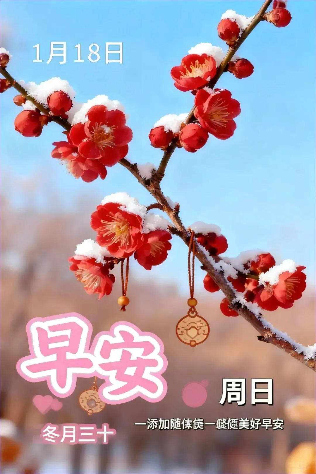 当前位置:首页>美女资讯>1月18日 周日早上好祝福图片 周日早上好祝福语图片最新的 今日最新高清送,冬月三十把温暖锁进屏幕