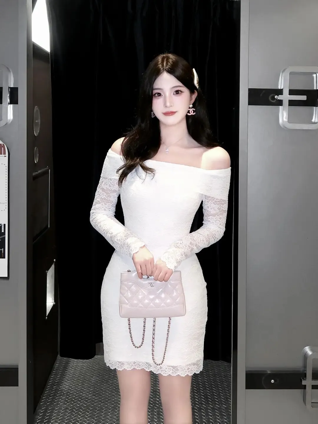 当前位置:首页>美女资讯>“白色露肩蕾丝裙+透肤袜+闪钻高跟”,温柔精致,优雅甜美的氛围感魅力