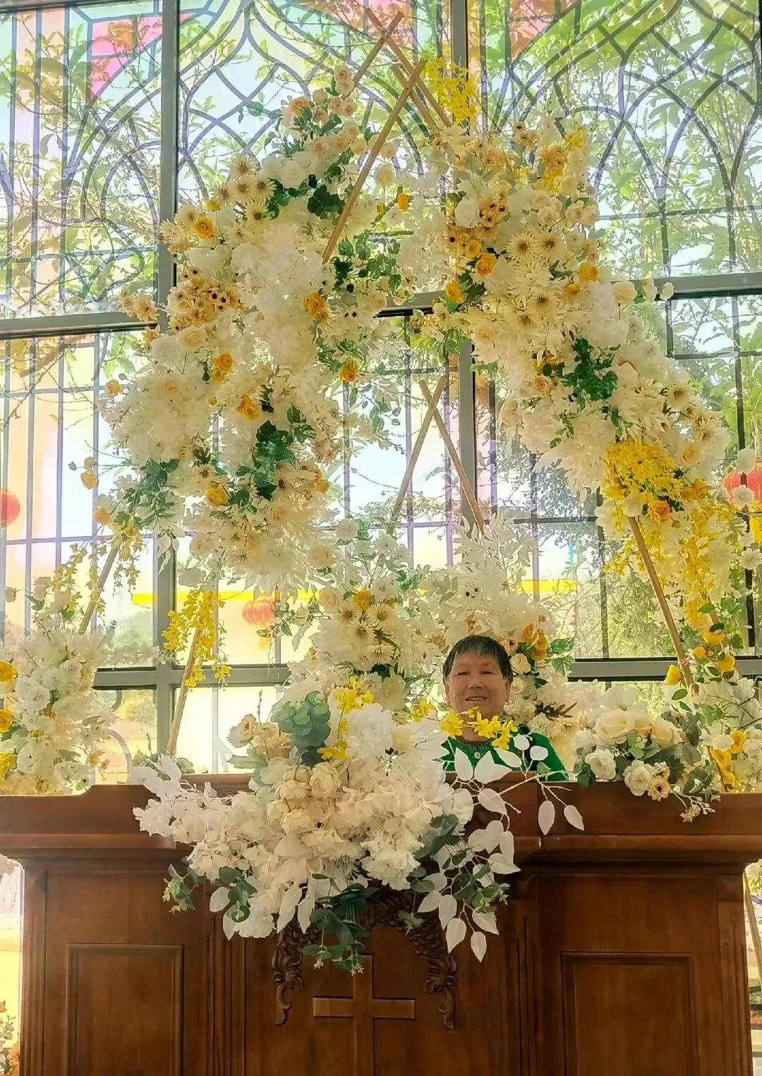 鲜花掩映下的妈妈更漂亮迷人。