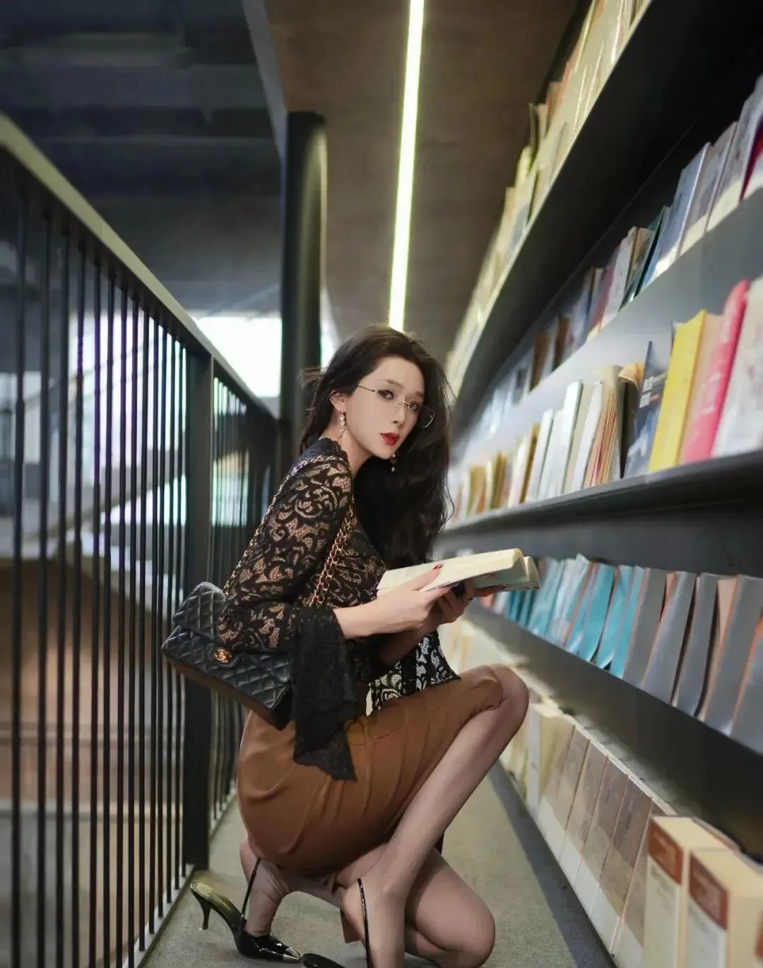 当前位置:首页>美女资讯>“蕾丝上衣+尖头高跟”,戴上眼镜后,真的太绝了!