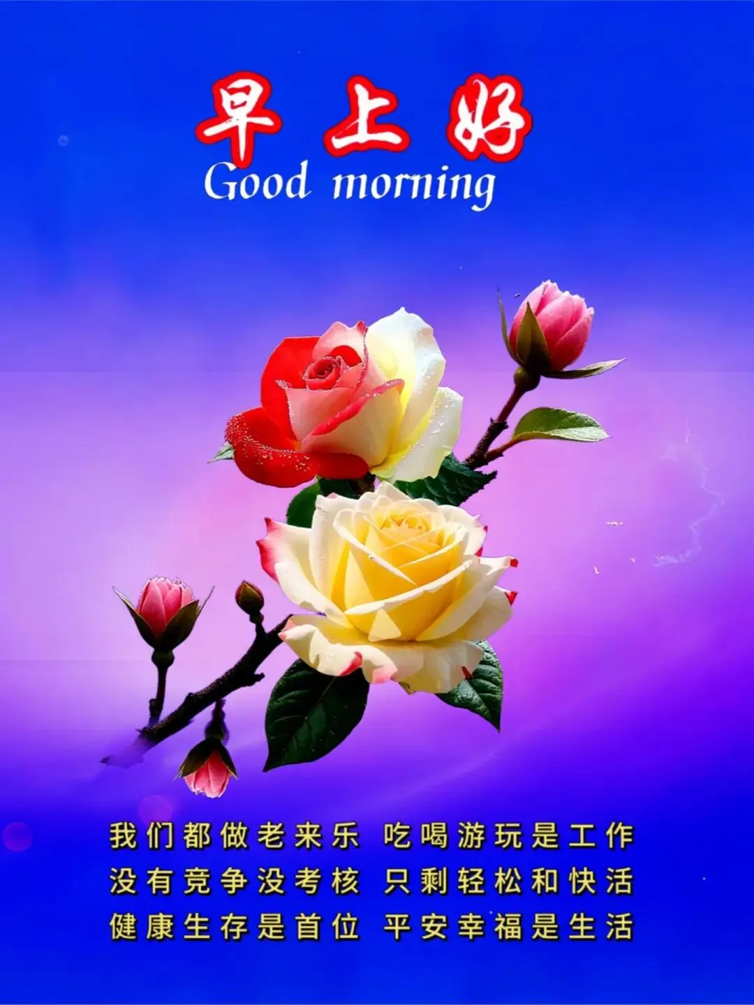 人生知足天地宽,好友互动不孤单,相隔千里不觉远,亲情友情重如山,每天微信聊聊天,幸福快乐在心间。早安!🌹🍻🌸🌞🌺🎉