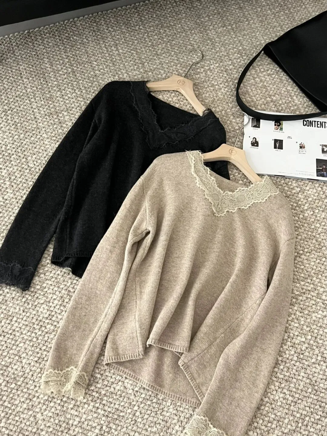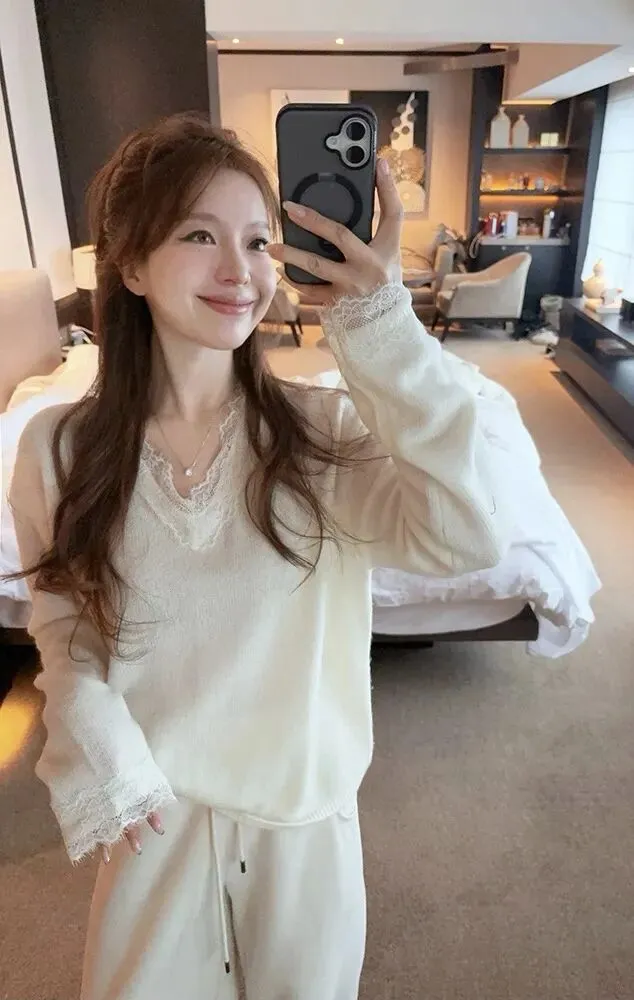 浪漫高级 仙气袭人❗️【蕾丝拼接V领羊毛针织衫】穿出高智感美人氛围✅V领+蕾丝拼接,若隐若现的撩人魅力,谁穿谁显瘦 ✅软fufu羊毛柔软亲肤,搭配开衫/外套/风衣都绝绝子! #女装针织衫#蕾丝针织#羊毛衫 10689