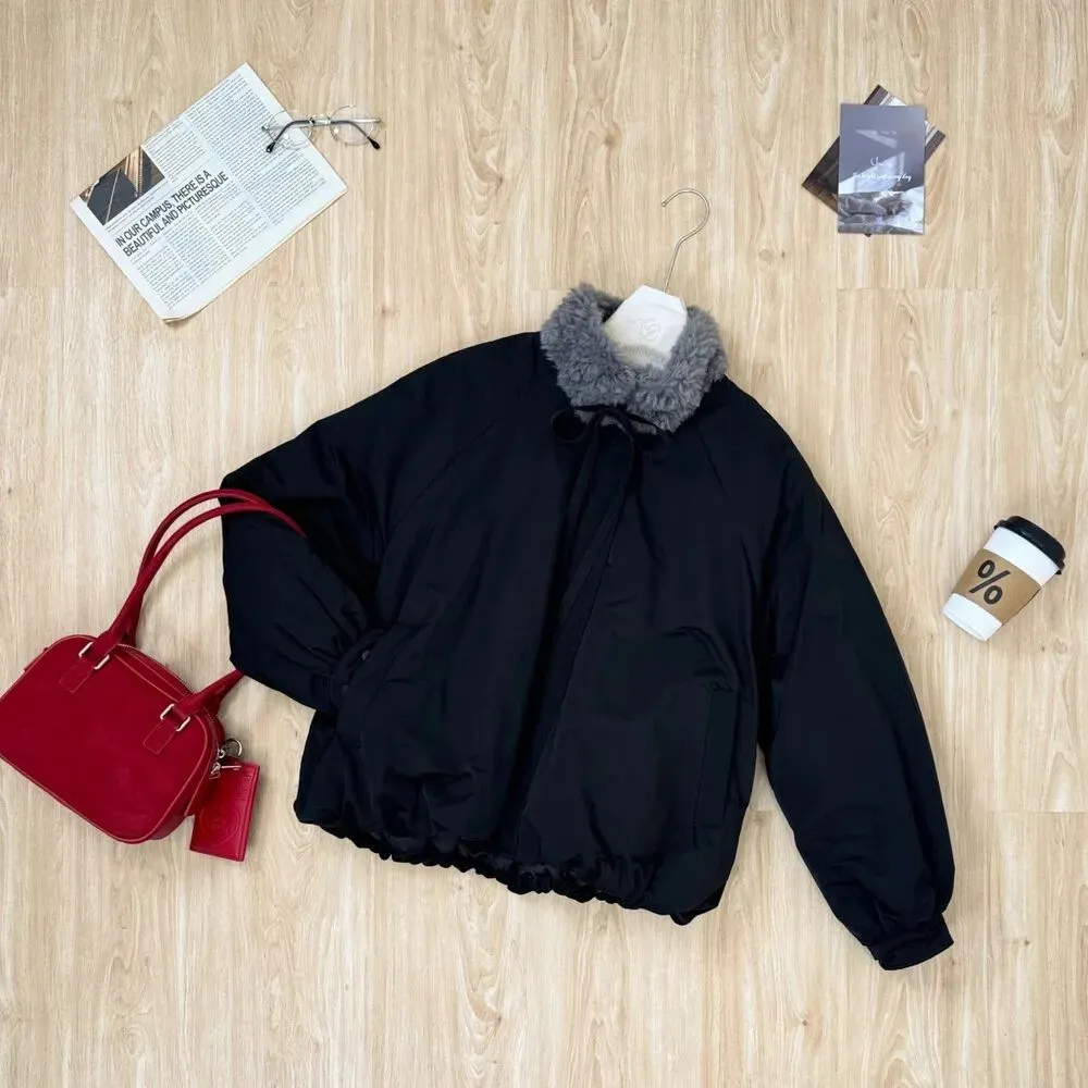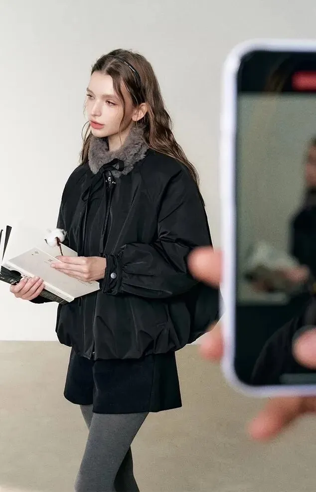 【钞级马力】年服首推❕升级羽绒版‼️氛围感天菜👏👏毛领系带花苞羽绒服!小众设计师款,一秒被种草!上身真的很绝,又韩又甜又有miu系千金风,线上棉衣版火爆在售,我们升级内里填充了90白鸭绒,颜值与保暖性并存‼️