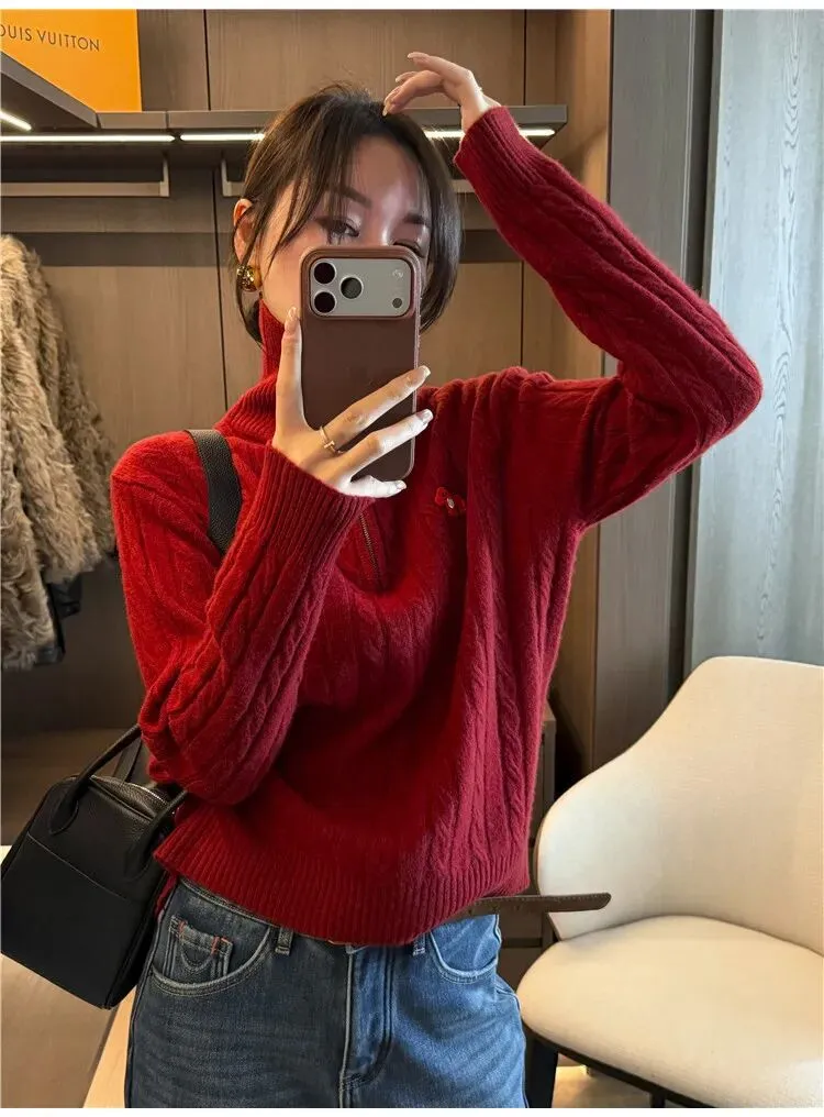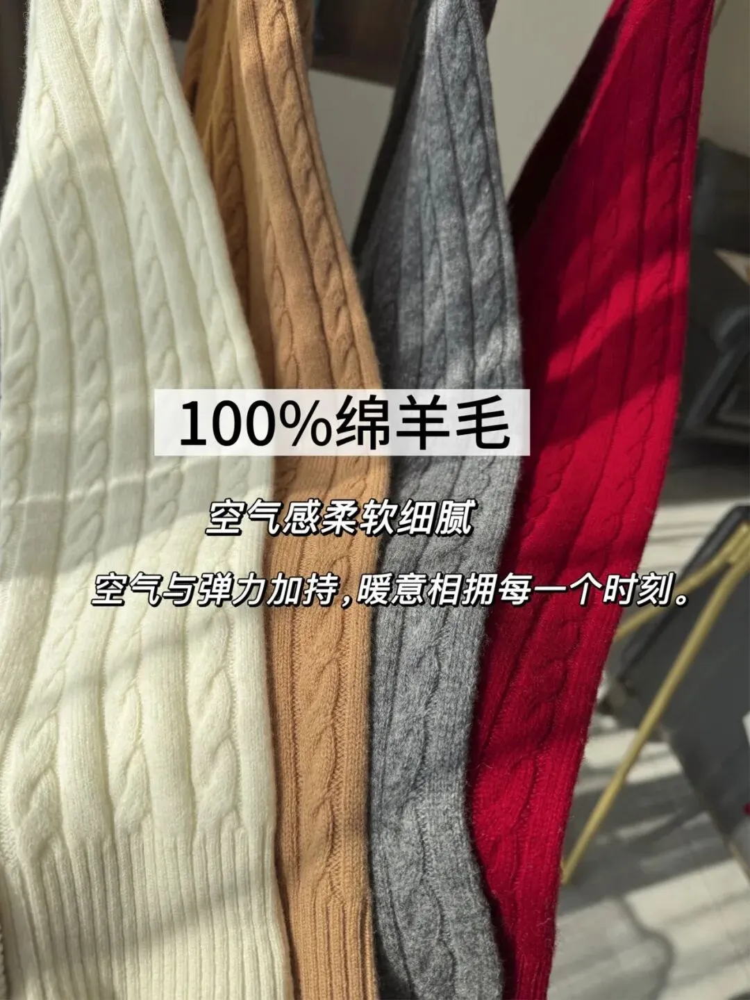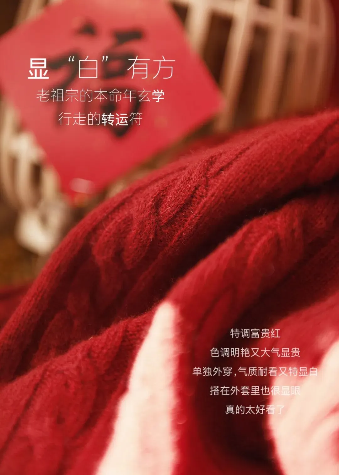 极致东方美学❗温婉气质拉满❗️【迎新春99+1%羊毛绞花毛衣】定织定染富贵红,这个红色调试了⑩几次才做出来的!优雅、复古、文艺❗ ✅绵羊毛材质,柔软有筋骨,回弹性佳,厚度适中,亲肤不扎 ✅显瘦H版型,不挑身材,慵懒不紧绷 ✅袖身和衣身中间立体提花,勾勒精致细节 ⚠️均码,80-130斤可穿!