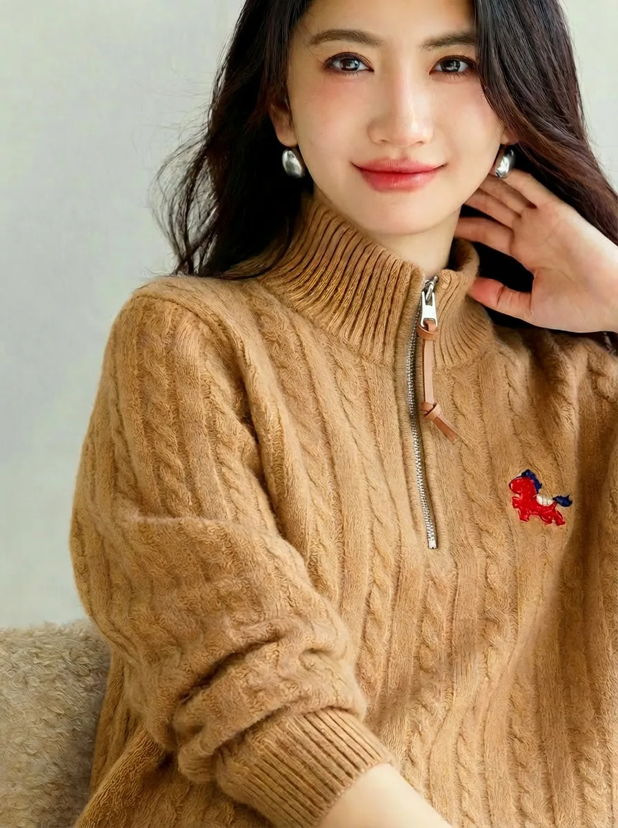 重磅牛货👊99+1%全羊毛❗️马年限定款新年战袍❗️新的一年“马到成功”【小马刺绣绞花99+1%全羊毛毛衣】万年经典绞花+小马刺绣碰撞❗️和马年的适配度太高❗️把新年的“好运”和“祝褔”都穿在身上! ✅99+1%全羊毛,软糯蓬松,细腻亲肤 ✅胸前点缀灵动小马图案,满满设计感,精致立体有氛围,微宽松版型,不挑人不挑身材,显瘦不臃肿! ⚠️④色,80-140斤可穿!