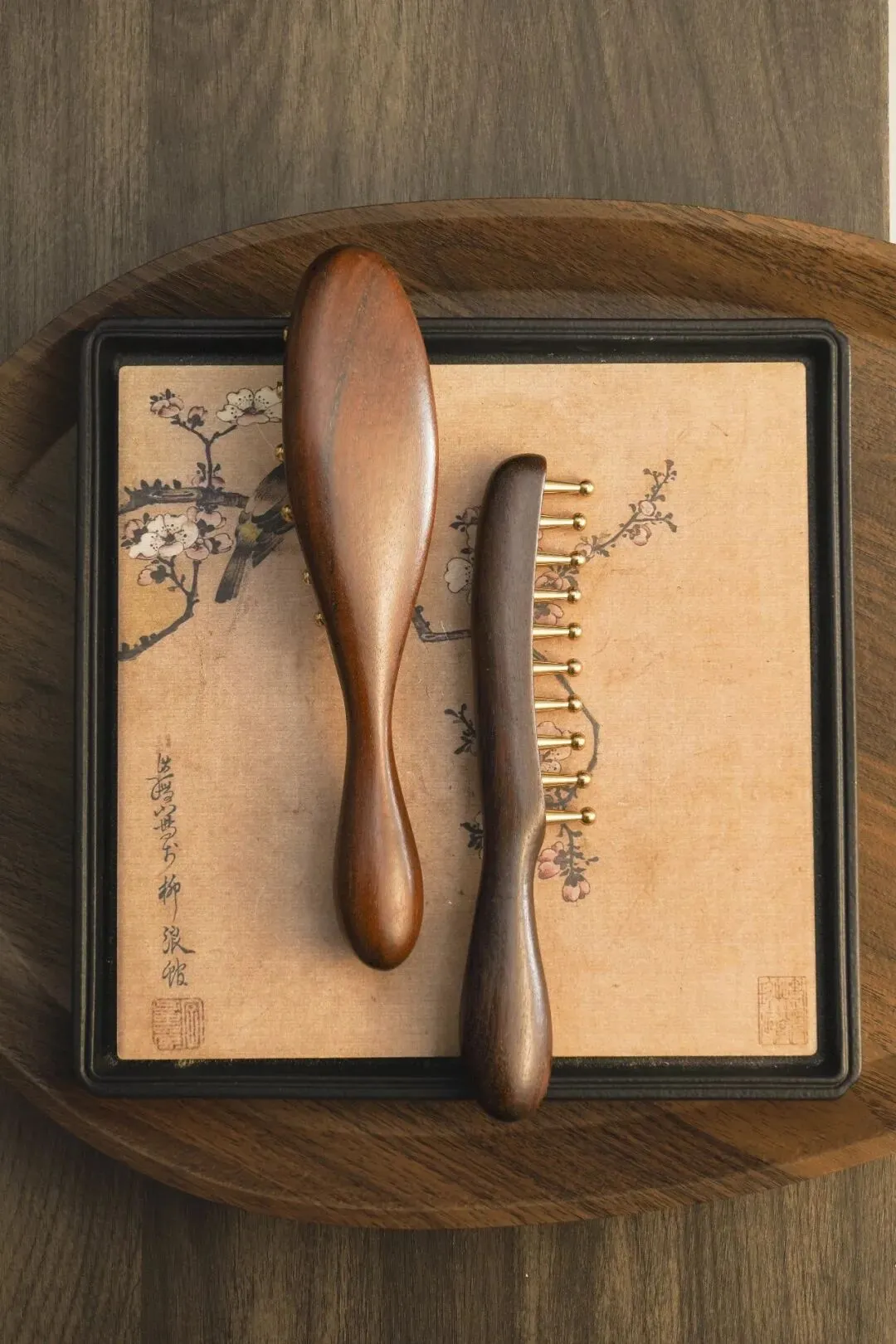 一梳即松❗️ 放松头皮+全身经络❗️ 【端得胜·金丝檀黄铜经络按摩梳】 🔺金丝檀原木,无漆无蜡加厚用料 🔺蘑菇黄铜大梳齿,导热穿透力强,深入头皮和肌肉深层 🔺古法榫卯深插齿工艺,整木挖槽➕立体雕刻,很牢固 🔺结节一刷即松,水肿一刮即消!10471