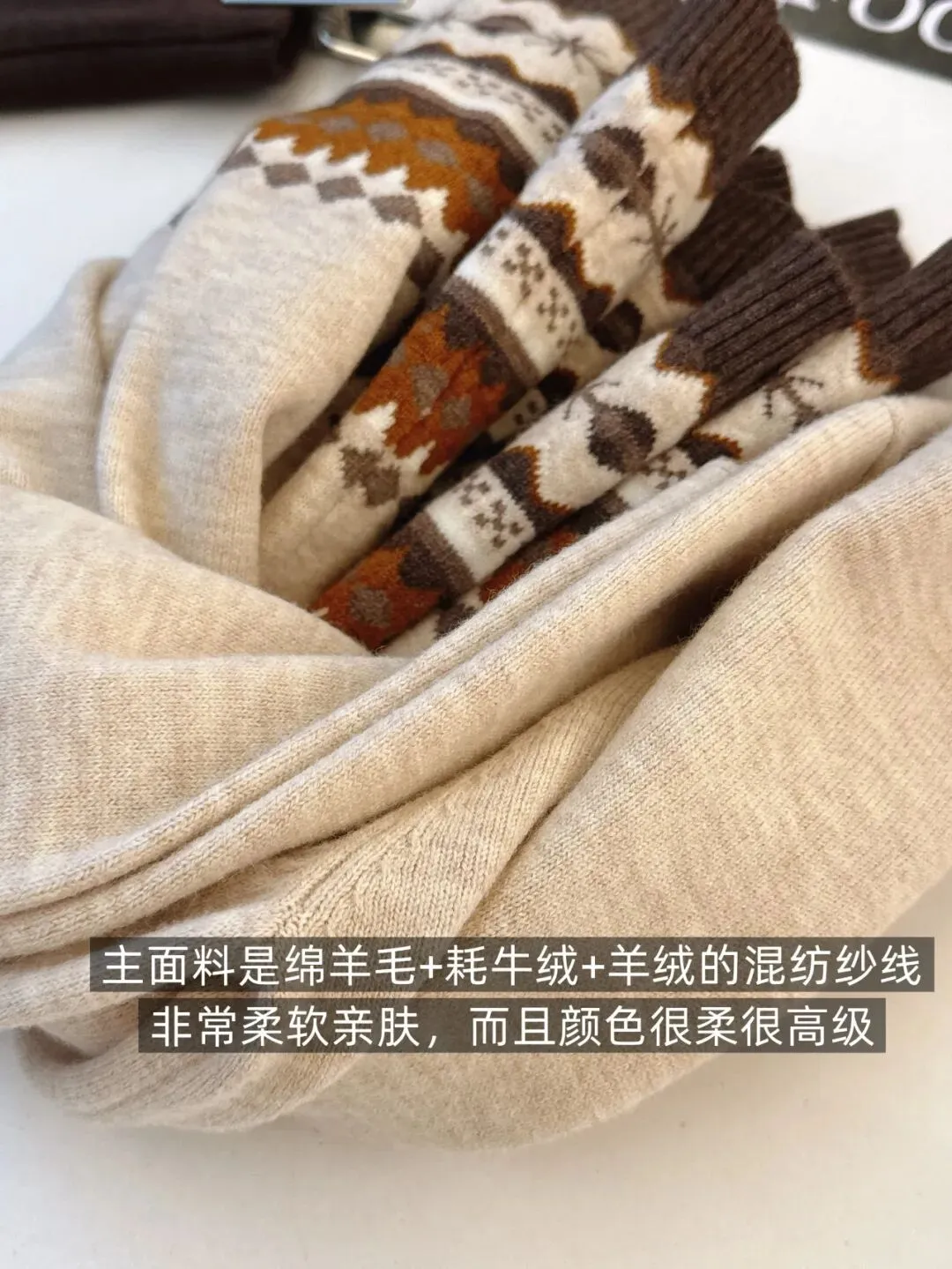 周末秒杀‼️99!毒家纯原剪标❗️小禾柜上💰399+1+!山羊绒+牦牛绒【费尔岛提花工艺圆领毛衣】⑧色重工提花,进口机器精密织造!告别普通毛衣,穿上它秒变氛围感女神! ✅64%绵羊毛、25%牦牛绒、11%山羊绒定纺细纱!细腻柔光,亲肤!轻盈柔软如云朵☁️ ⚠️尺码:S-L(80-135斤!)