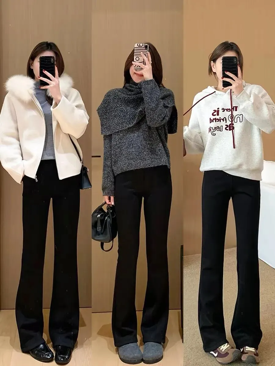 【🔺钞级马力🔺】笑含GE家神级爆款‼️年裤首推款‼️ 定制常规版VS加长版,秒杀今年做的所有裤子~你就穿吧,决对是你衣柜你蕞显瘦的一条裤子‼️提臀✔️显瘦✔️穿出细长直✔️从春秋做到冬天的一款加绒版④面弹小黑裤!立裁微喇版型,气场微微释放,不会很夸张的那种!搭配无不费力!