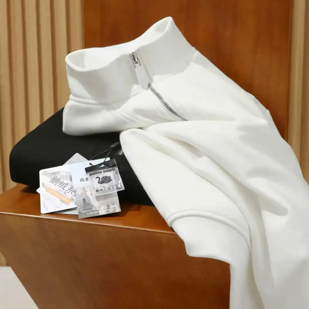 老公说要穿它过年🔥真正告别臃肿❗一件顶③件❗90%大朵拒水白鹅绒🪿零下也丝毫不慌❗【男士保暖加厚通勤半拉链鹅绒卫衣打底衫】配检测报告认证,蓬松锁温力远超普通羽绒❗寒风无缝可钻❗ ✅羊绒感面料软糯贴肤,10A 抗菌+光变人参精华,⑤层通道锁温结构锁住暖意! ✅宽松直身版型,半拉链高领穿出2种风格,外穿有型内搭也不臃肿! ✅90优质白鹅绒填充,⑤明治空气层储温,太空舱锁绒不跑绒