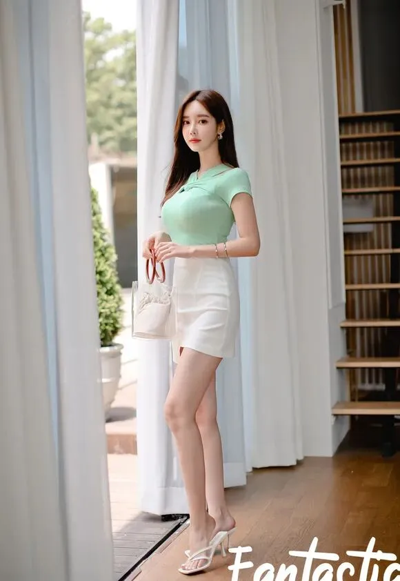 当前位置:首页>美女资讯>美女模特孙允珠薄荷果绿交叉裹胸半袖休闲裙