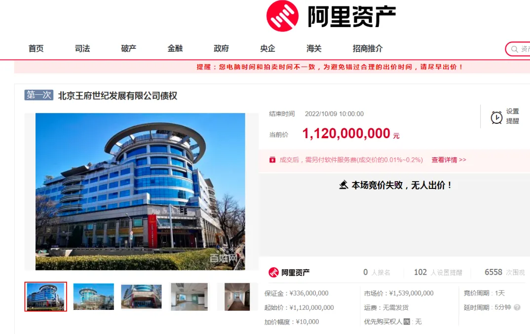前段时间,位于北京绝对核心地理位置,价值11.2亿的王府世纪拍卖,吸引了近五千人围观。但由于无人出价,最终流拍。
