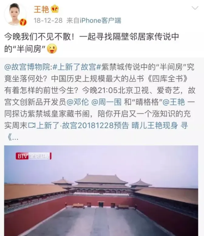 几乎同时,打着“故宫好邻居”名号的王艳开始频繁参加综艺。