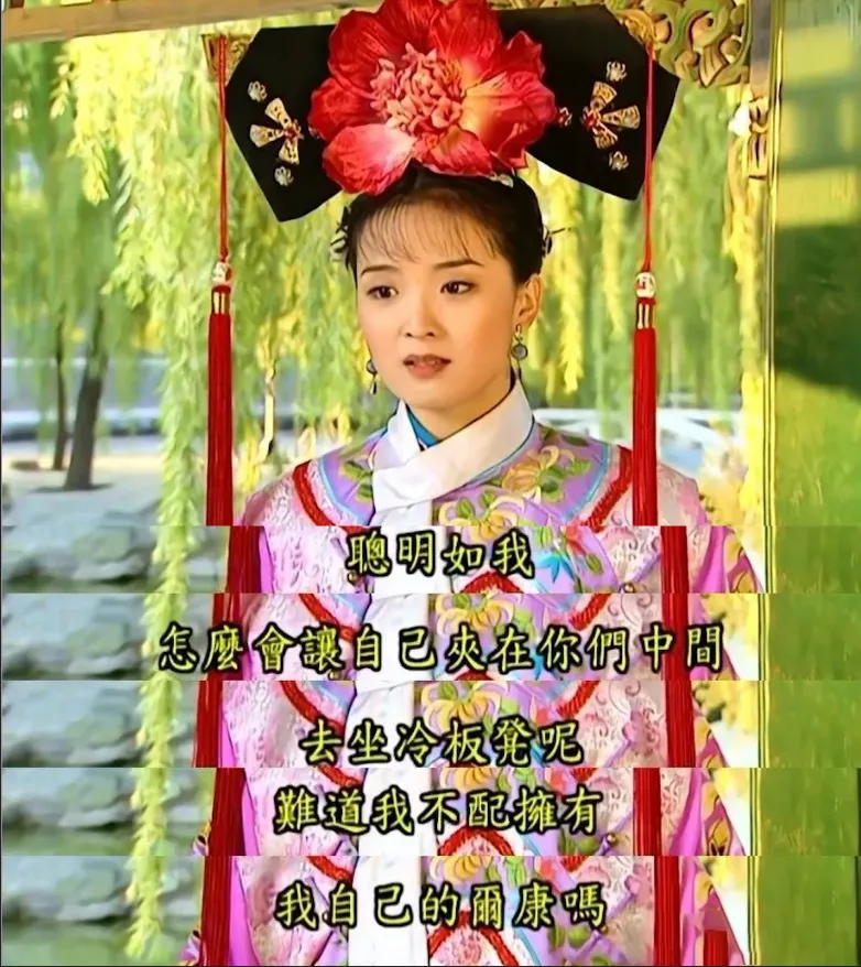 在被老佛爷强行安排插进紫薇与尔康的感情中的时候,晴儿慷慨陈词,体面又自尊