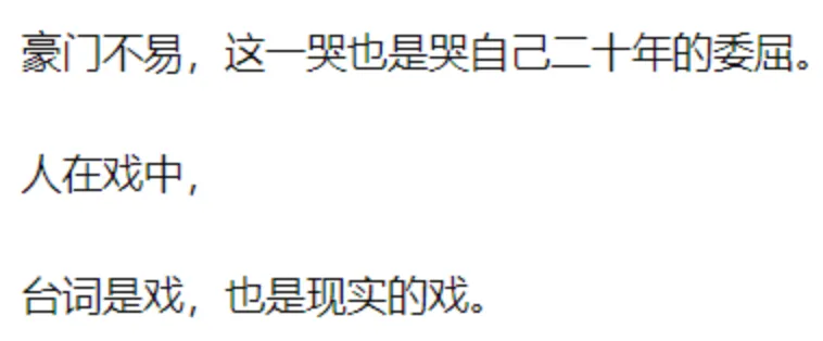23岁的时候就一头扎进了那个传统而稳妥的生活中,一过就是25年,在这场豪门幻梦中,沉沉浮浮,心酸也好,委屈也罢,人生终究落子无悔。