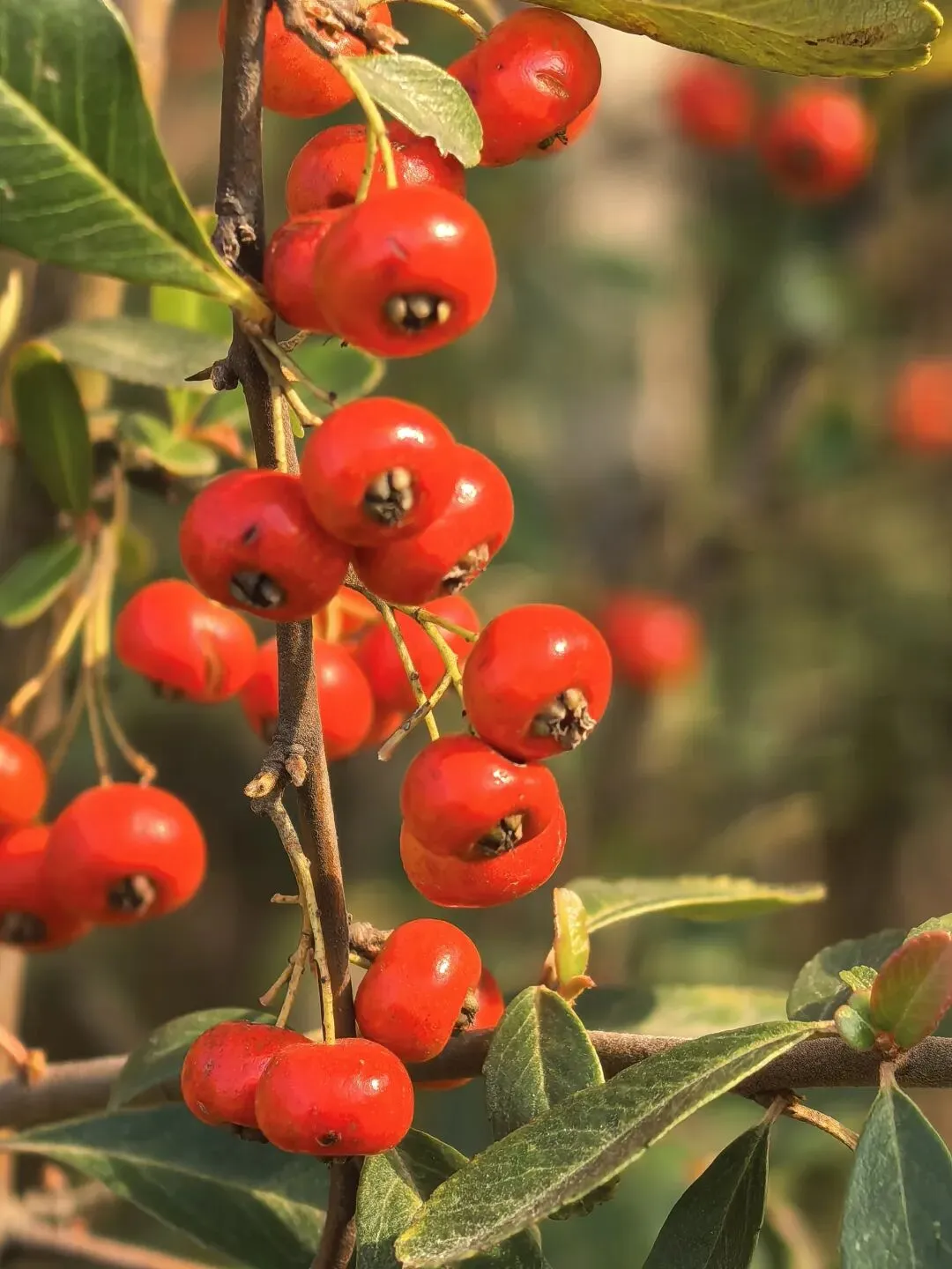 山中火棘果实、由橙红变为鲜红,颜值绝佳、娇艳无比。