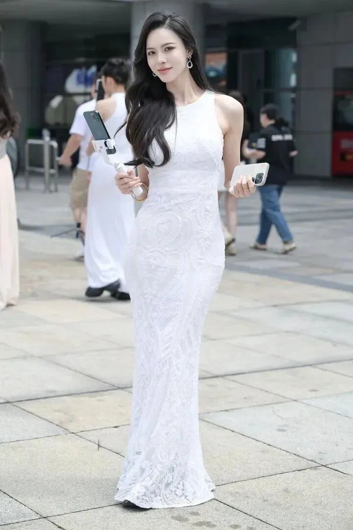 白色蕾丝长裙穿搭指南,这样穿真的绝了!