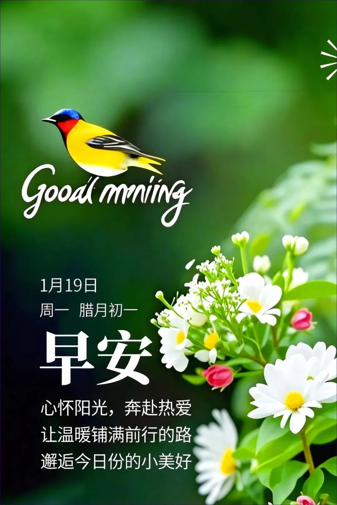 当前位置:首页>美女资讯>1月19日 周一早安祝福语图片最新的 周一最美的早安祝福语图 周一早安祝福语大全
