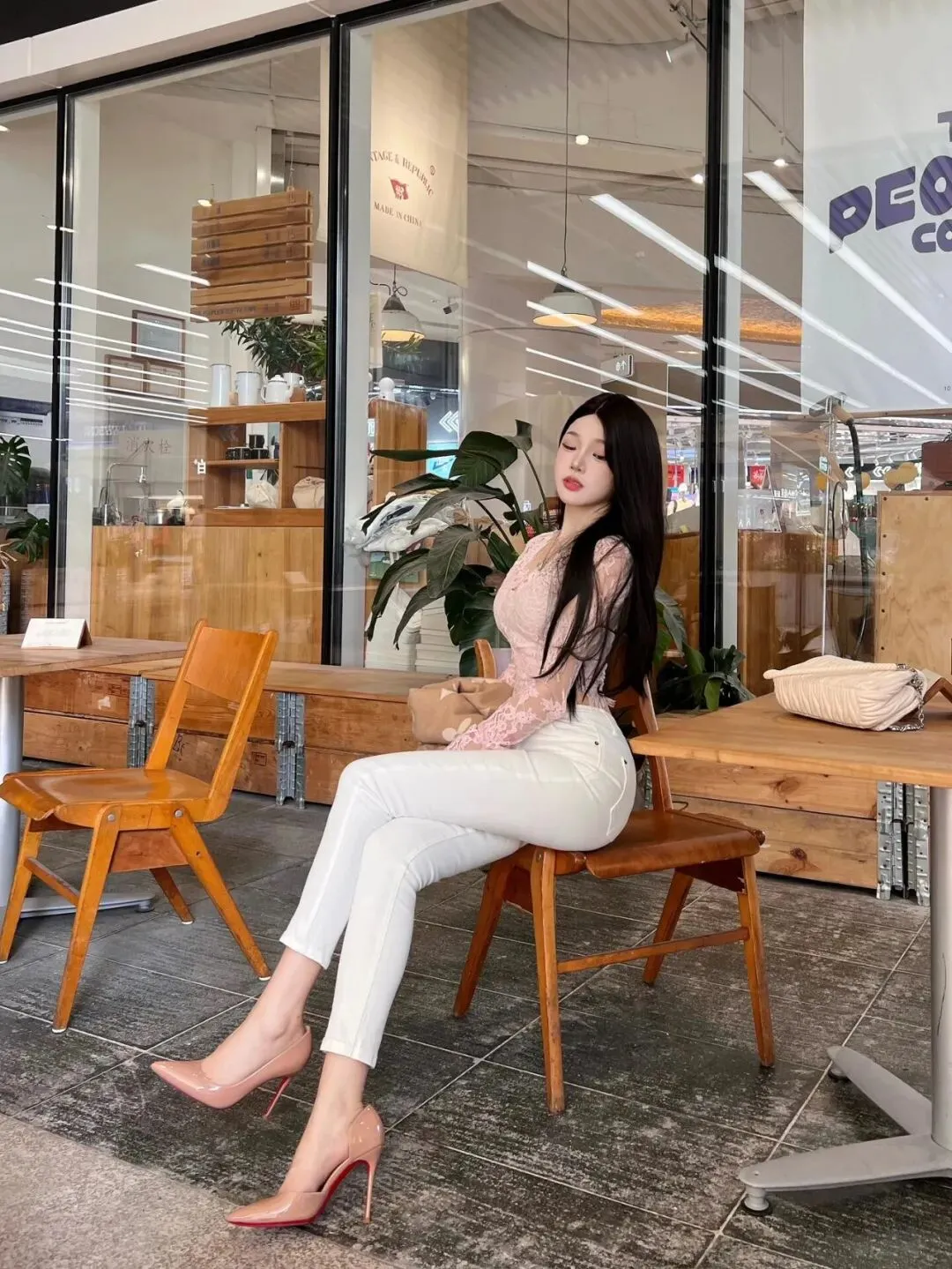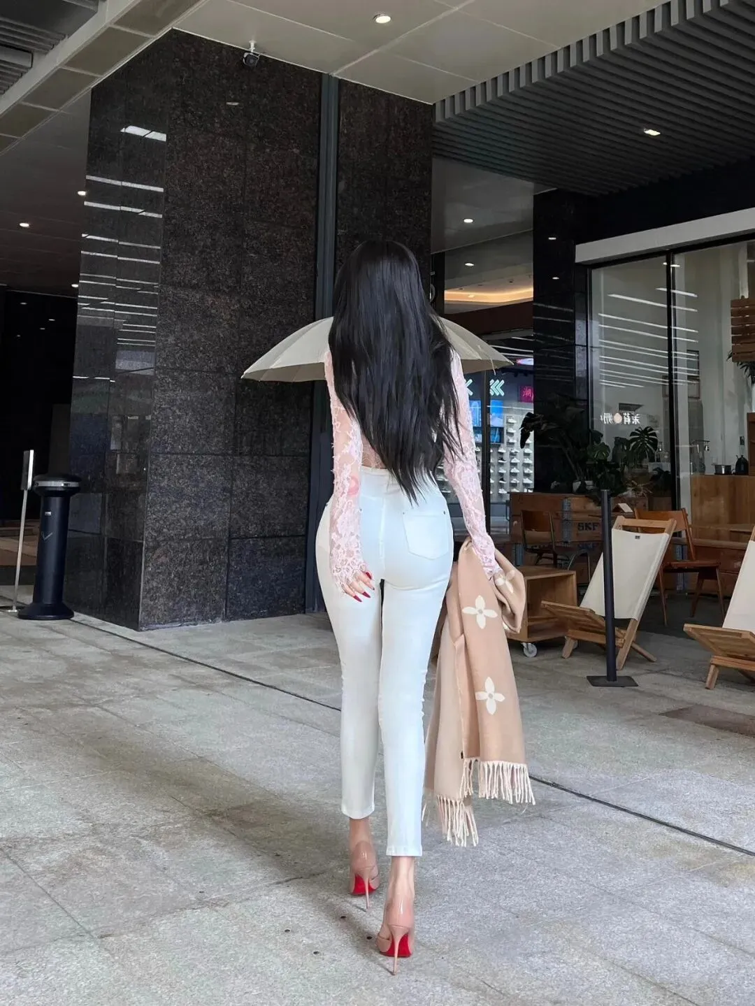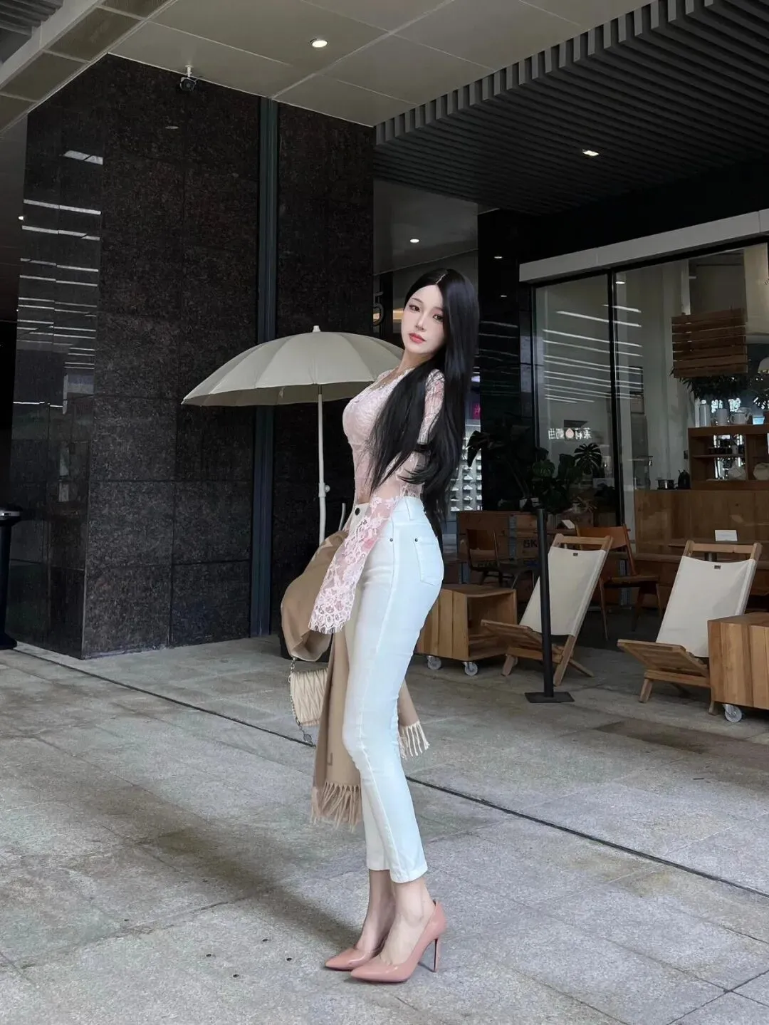 当前位置:首页>美女资讯>颜值穿搭:「浅粉色蕾丝上衣+白色牛仔裤+高跟」