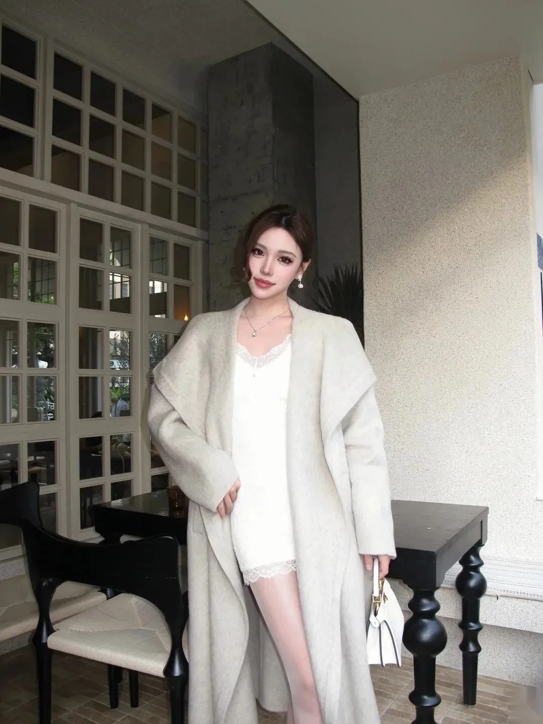 当前位置:首页>美女资讯>浅米大衣配蕾丝内搭,衬得气质真无敌~