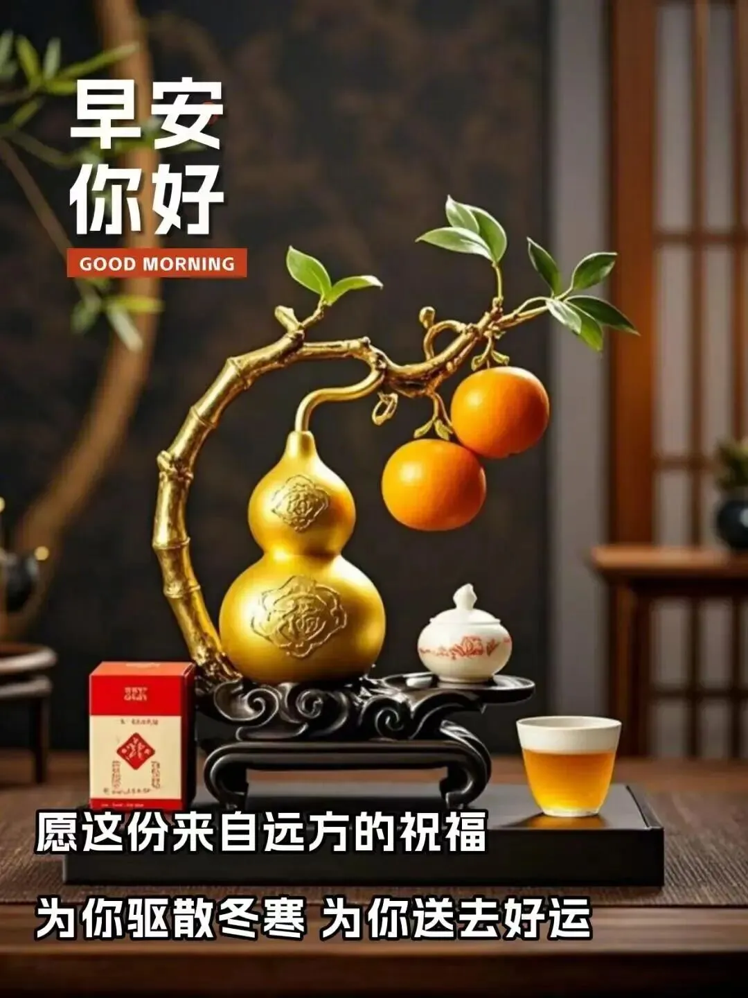 东方送你摇钱树,西方送你永安康,南方送你成功路,北方送你钱满仓。四面八方全送到,金银财宝当头照,冬季快乐,早安!