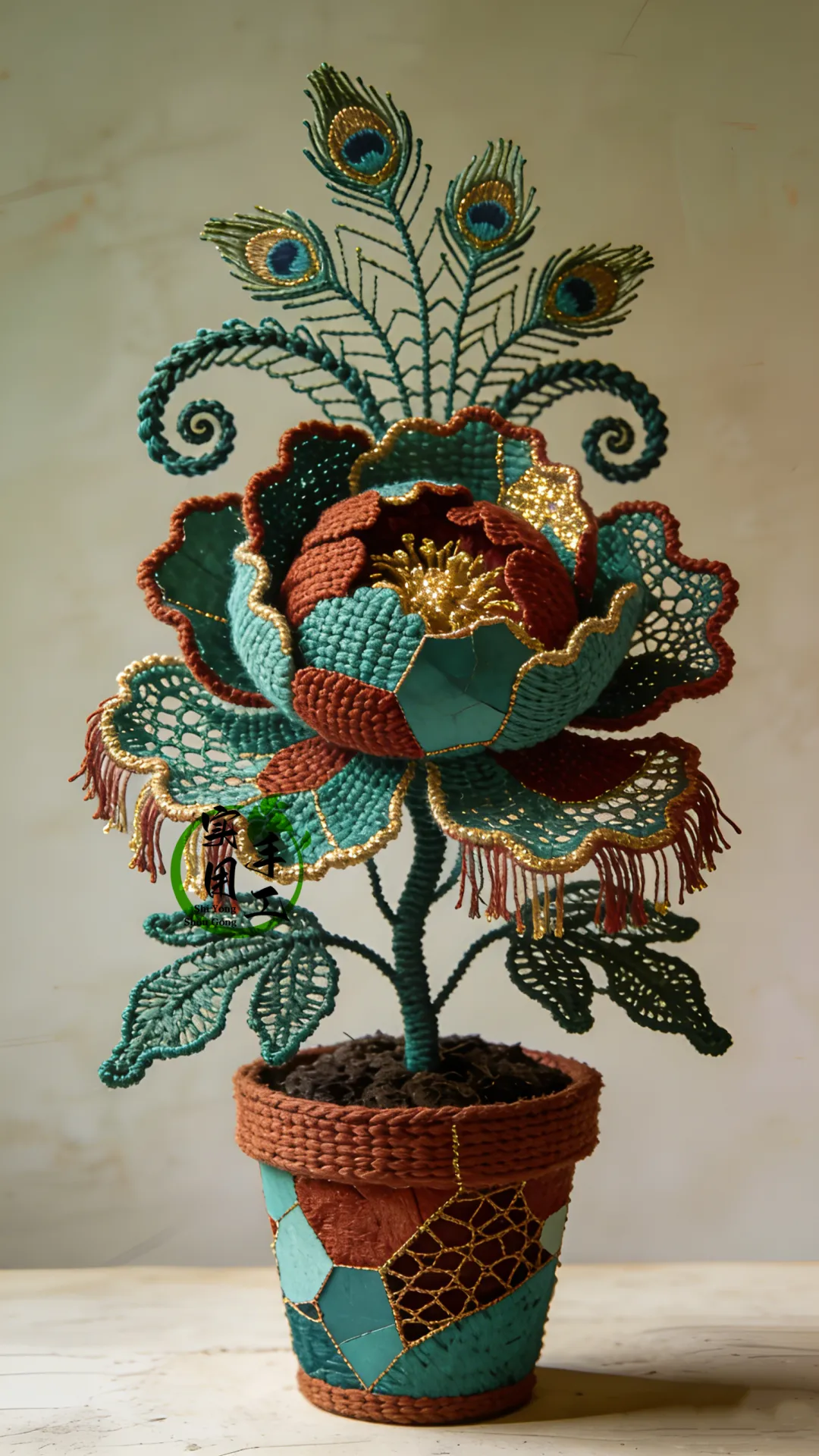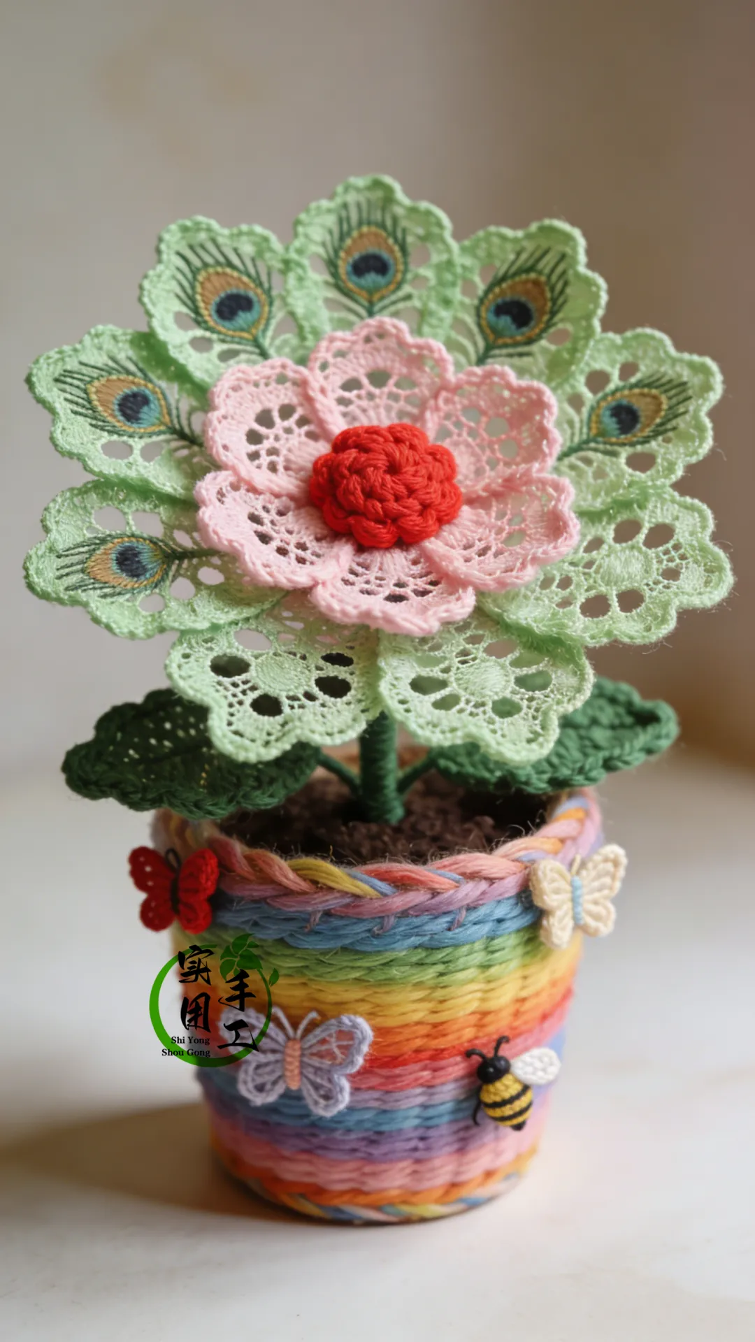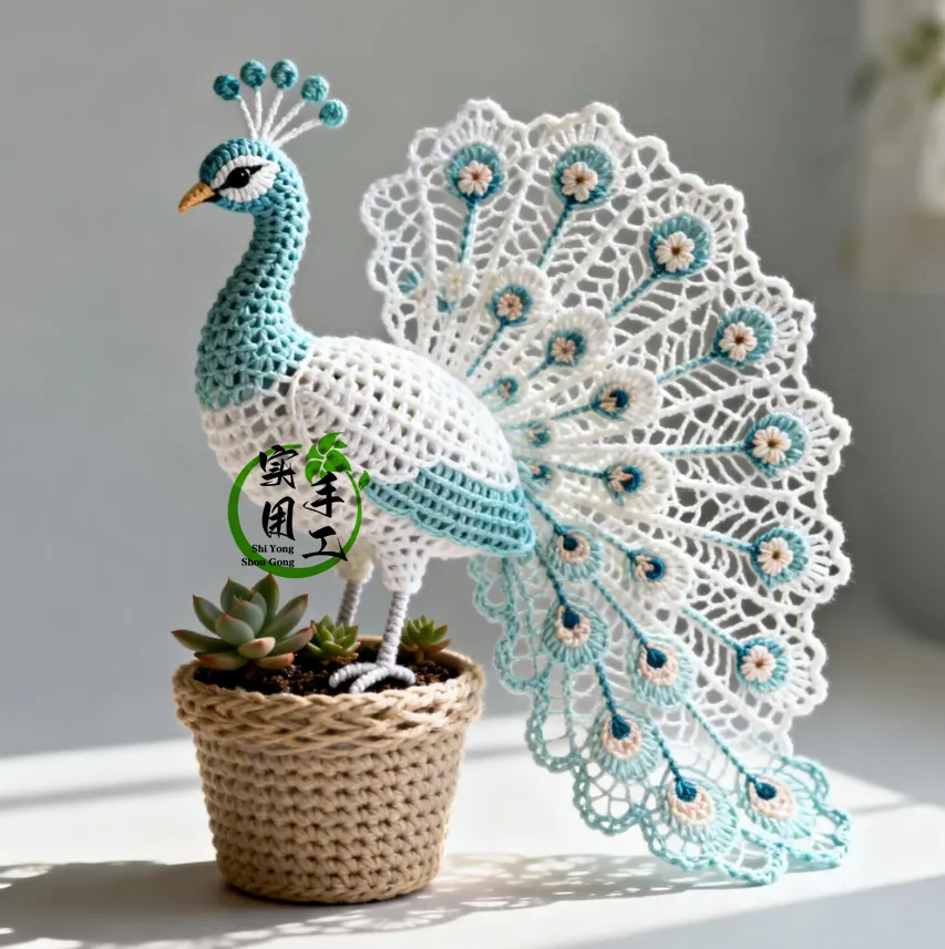 「针织作品」蕾丝孔雀花盆栽:提升家居美感的植物之选