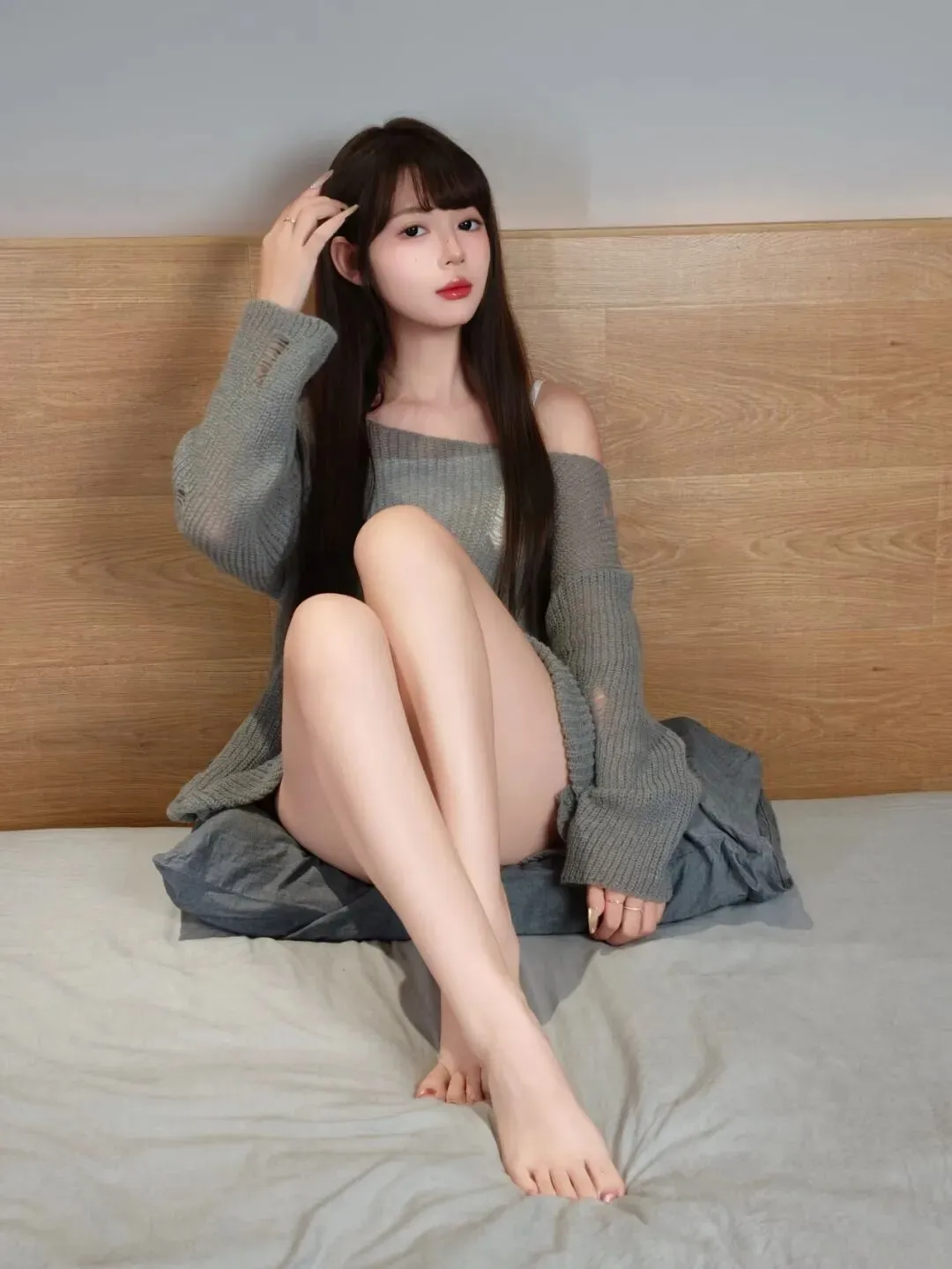 找个软抱枕靠在床背上坐着,双腿自然弯曲交叠,一只手轻轻撩起耳边的头发,另一只手搭在腿侧,不用刻意盯镜头,眼神柔一点,松弛的慵懒感一下就裹满全身啦。