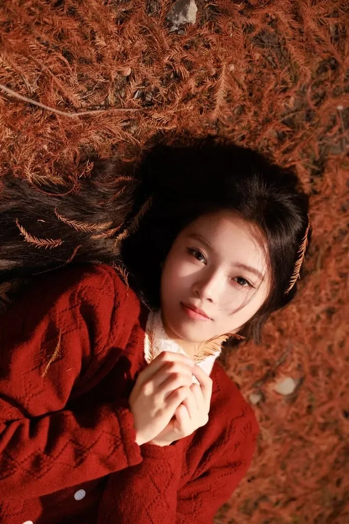 找厚厚的红杉落叶堆躺下来,头发散在叶子上,双手轻轻交握放身前,眼神看向镜头,温柔又治愈,秋日氛围感直接拉满,记得避开扎人的枝叶哦。