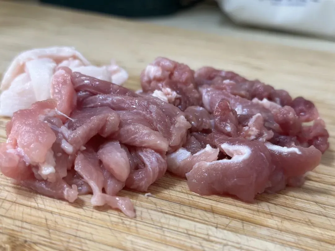 1. 处理食材:猪肉逆纹切丝,加1勺生抽、1勺料酒、少许淀粉抓匀,腌制15分钟锁水
