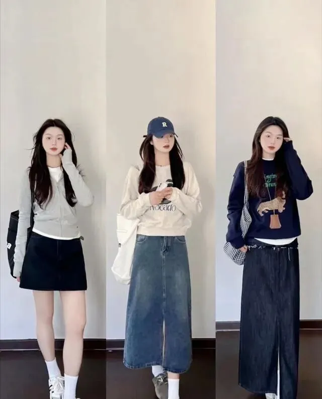 高腰牛仔裤 , 利落 , A字裙 , 温柔 , 都能跟西装搭到一起 , 还不会显得太死板。
