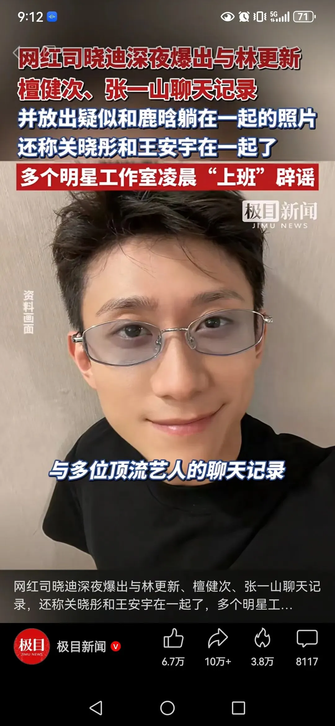 • 林更新、檀健次、黄明昊、王安宇、关晓彤(澄清与王安宇绯闻)等多家工作室密集发声,坚决否认相关爆料,表示已取证并将追究法律责任。林更新工作室的回应“若该博主确有健康问题,望其早日康复”更引发诸多解读。