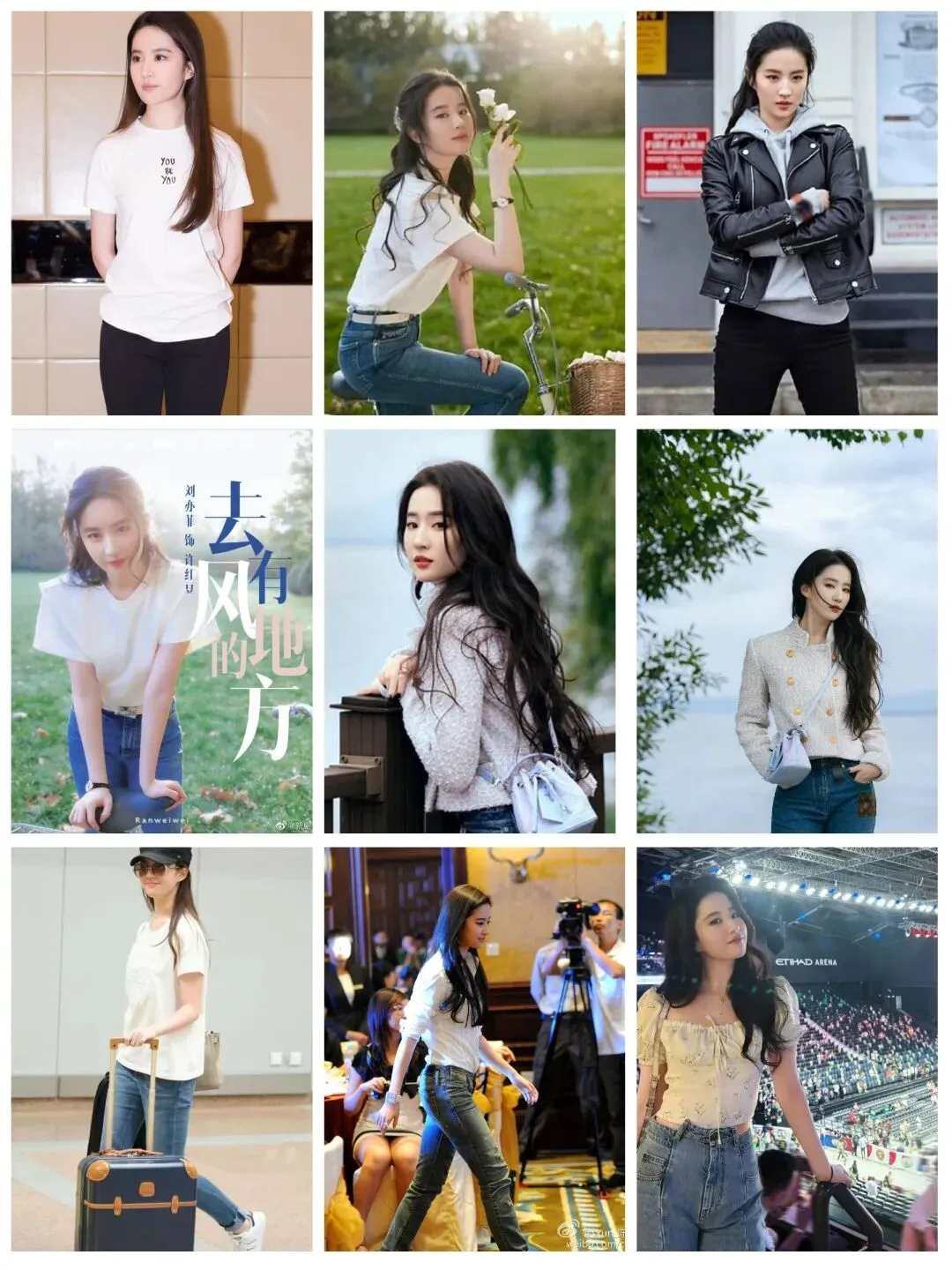 记忆点 12:牛仔简装 —— 日常里的随性自在近年私服造型,她的私服中牛仔裤出镜率极高,搭配白 T 恤、休闲外套或针织衫,简约搭配既凸显高挑身形,又藏着成熟女性的随性洒脱,松弛感拉满。