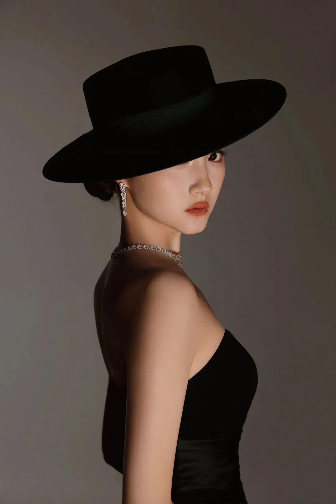 关晓彤黑裙礼帽,复古女爵氛围感拉满