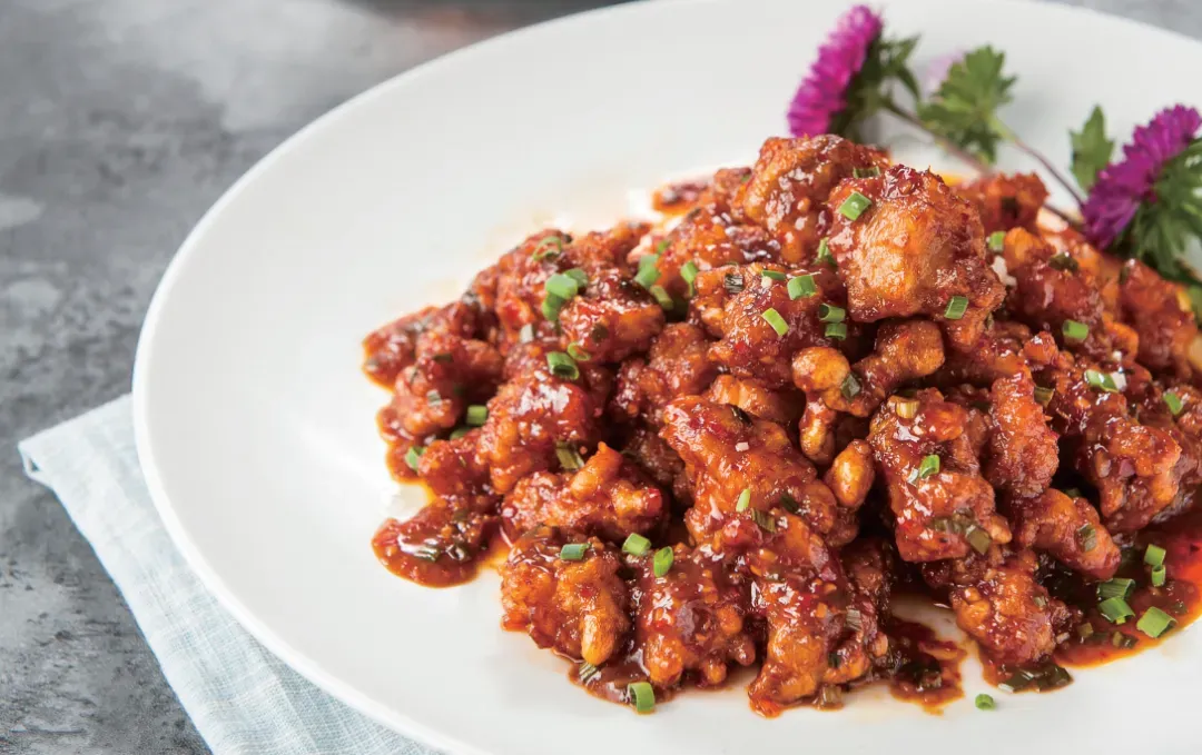6. 淋入鱼香味汁时间不宜太早,否则易导致鸡块回软。