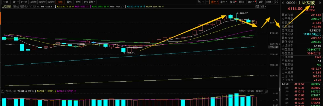 接下来,还是说一下市场情况,今天大盘成功站上4100点指数,也就是说如期出现上涨,不过上涨的力度不大,也仅仅只涨12个点,好在是站上10日均线之上。