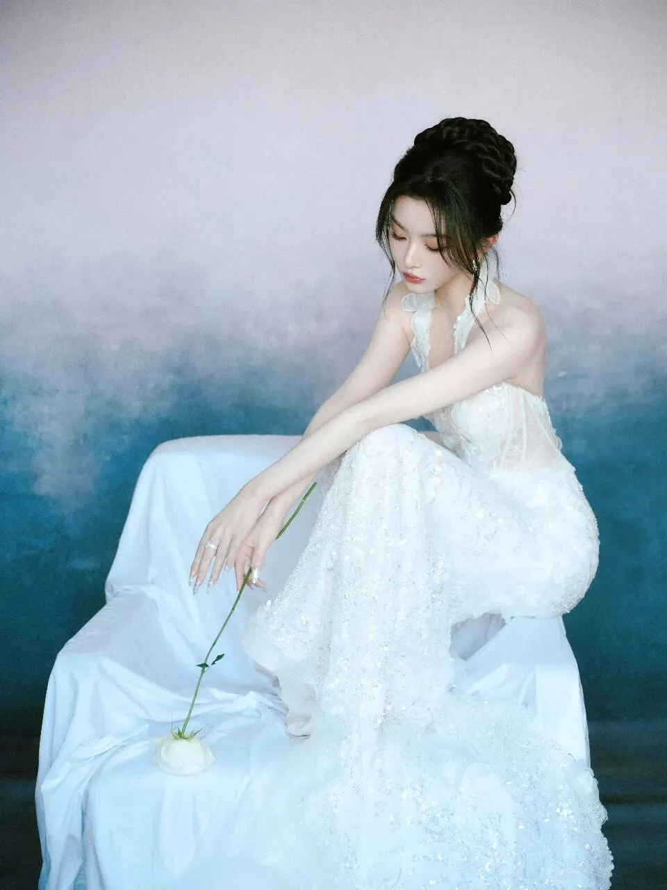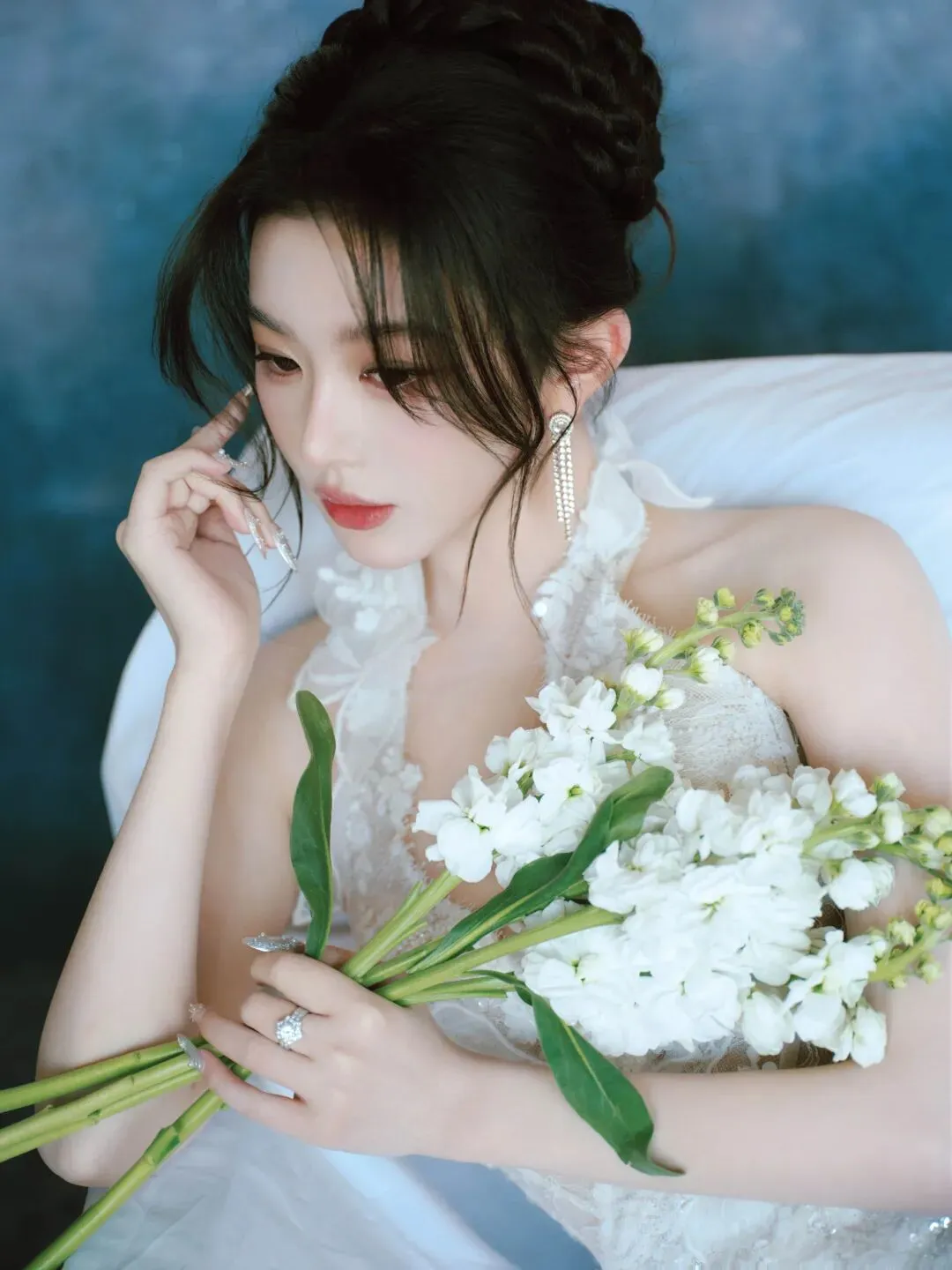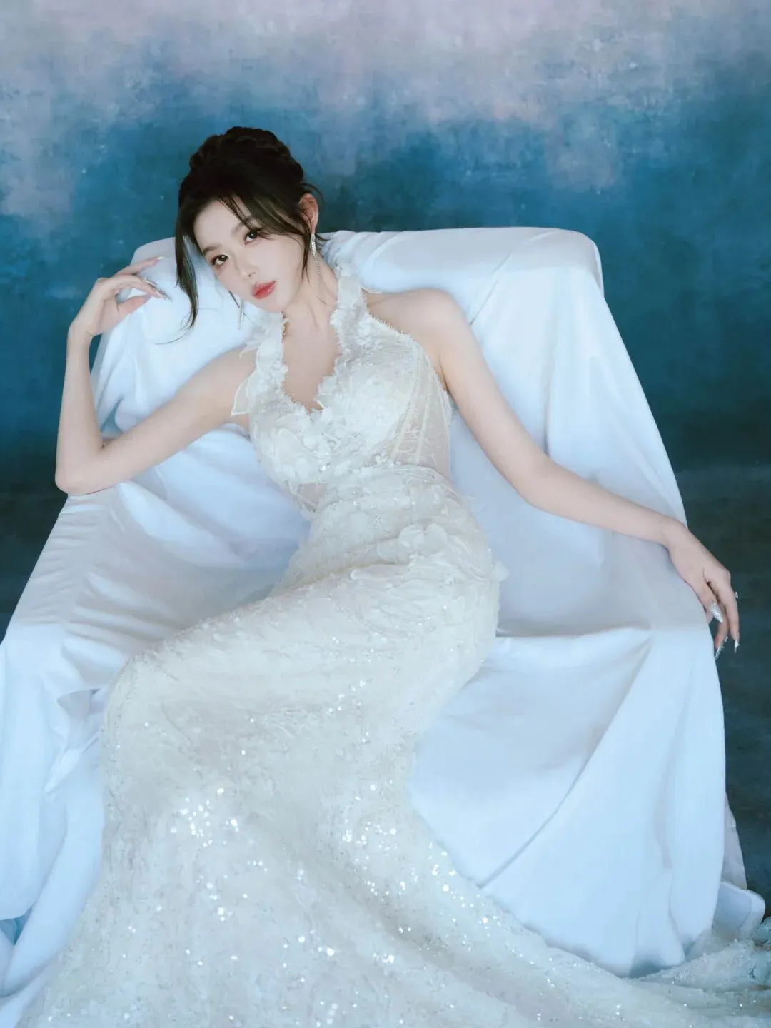 当前位置:首页>美女资讯>蕾丝缠绕着清冷,碎钻点缀着孤高,这一袭白纱是独属于孔雪儿的浪漫序章