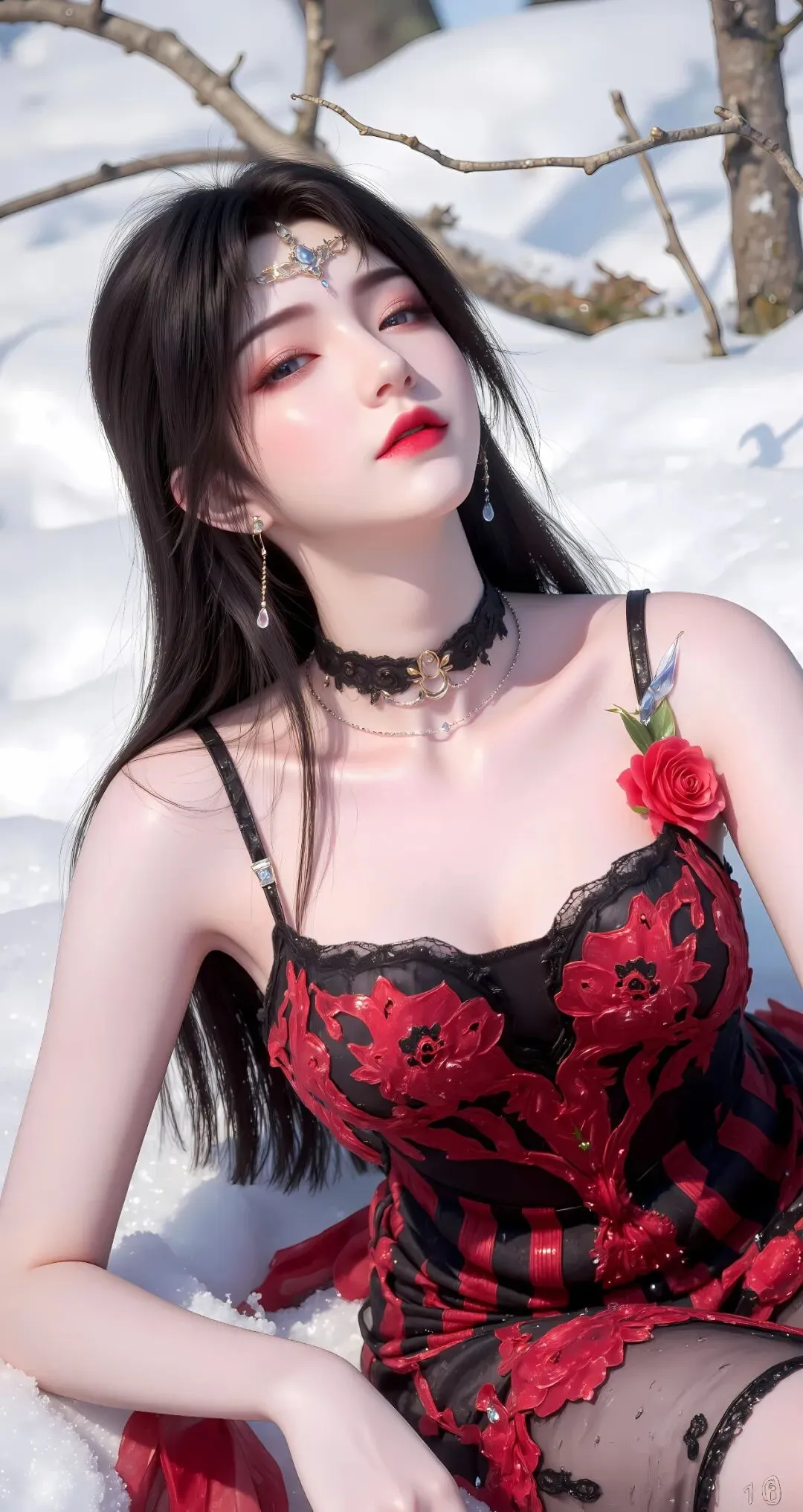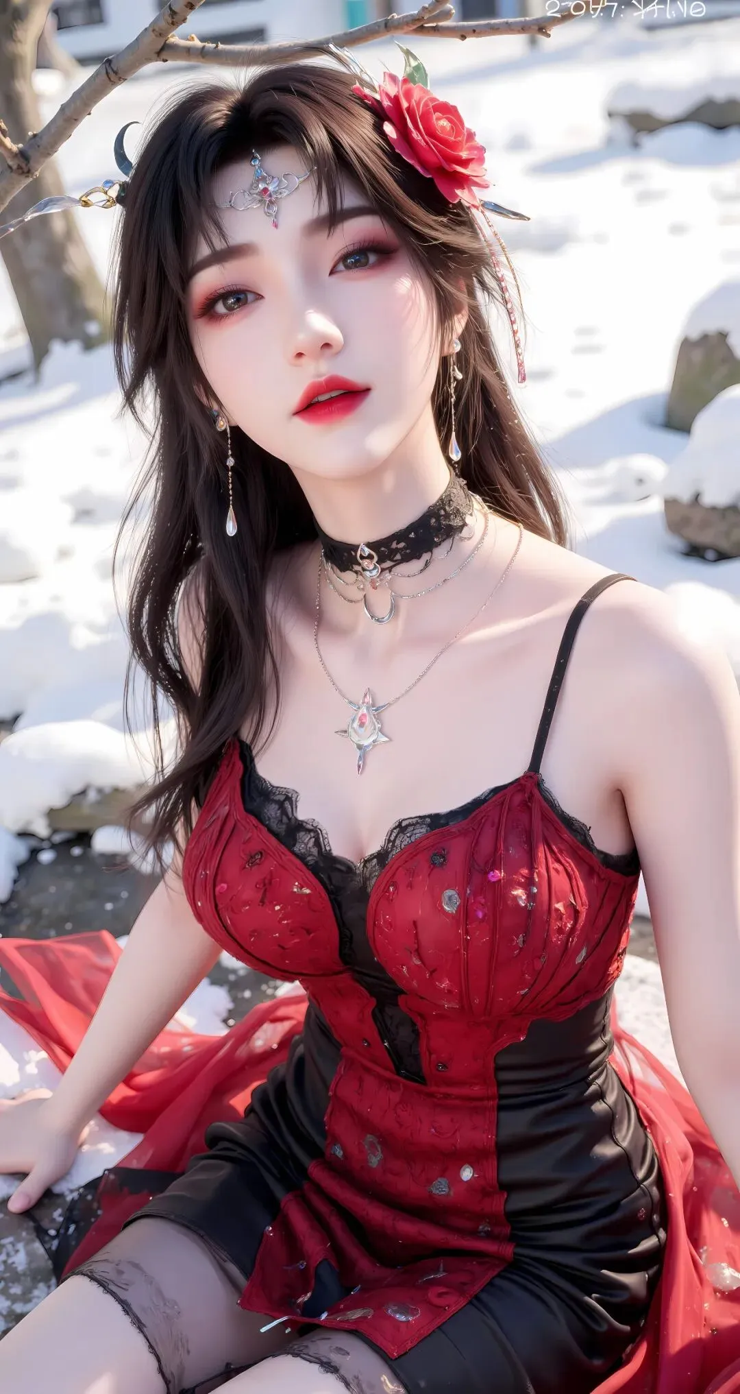 邀月 蕾丝红裙性感篇 6K高清壁纸