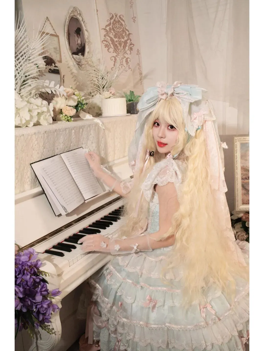 当前位置:首页>美女资讯>洛丽塔甜心の蕾丝圆舞曲:十四帧在花与钢琴间起舞的童话奇遇——当金发遇见浅蓝蝴蝶结,每一层裙摆都在壁炉沙发与琴键上跳起甜梦华尔兹