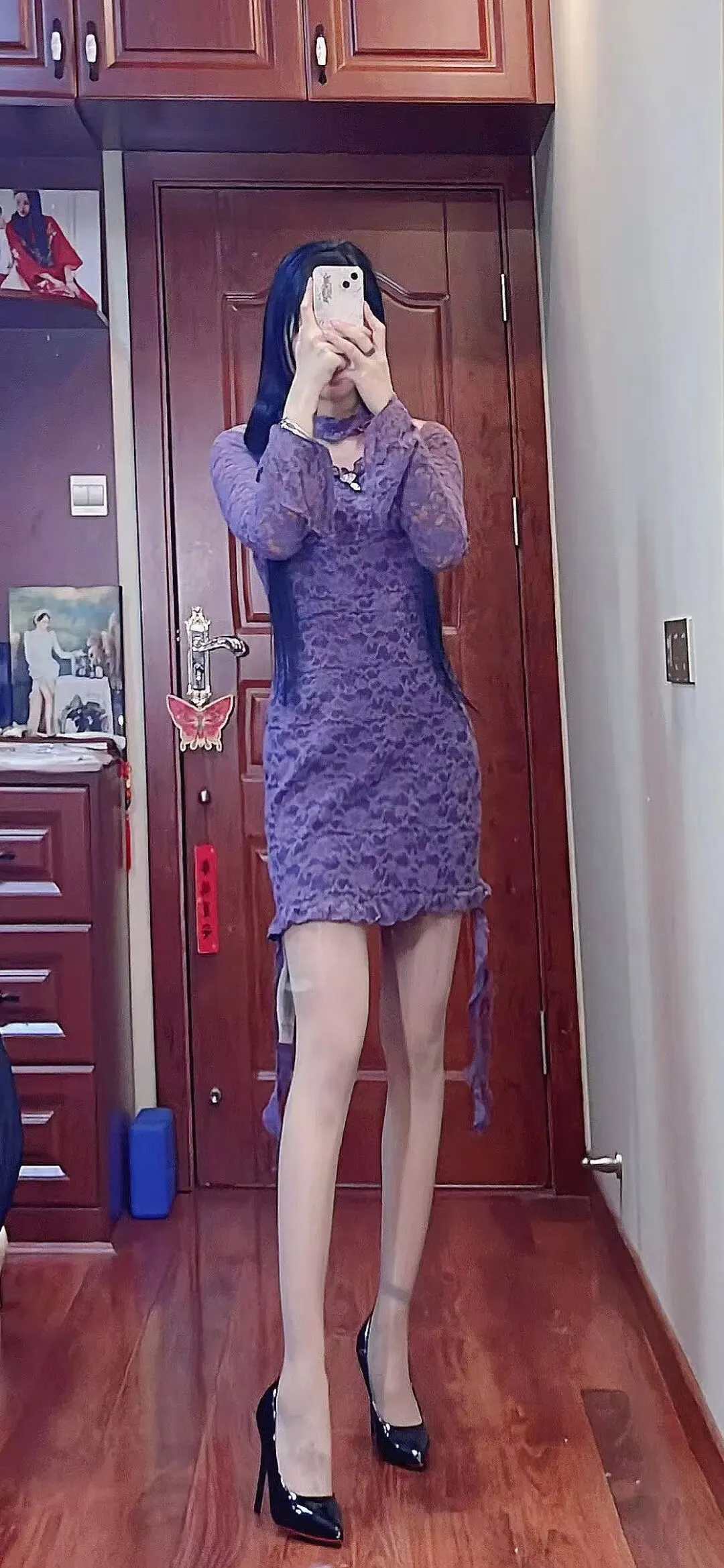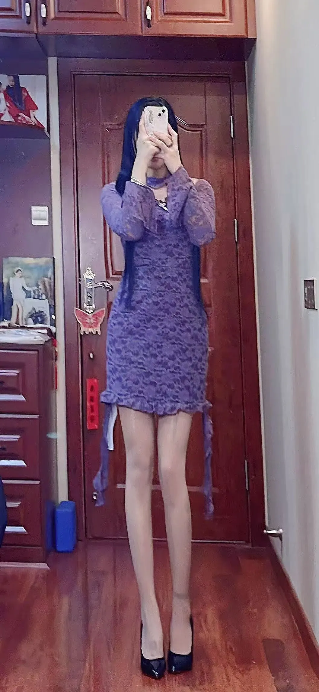 当前位置:首页>美女资讯>紫蕾丝包臀裙配黑高跟鞋,显气质绝了!