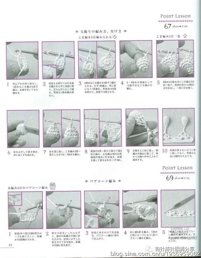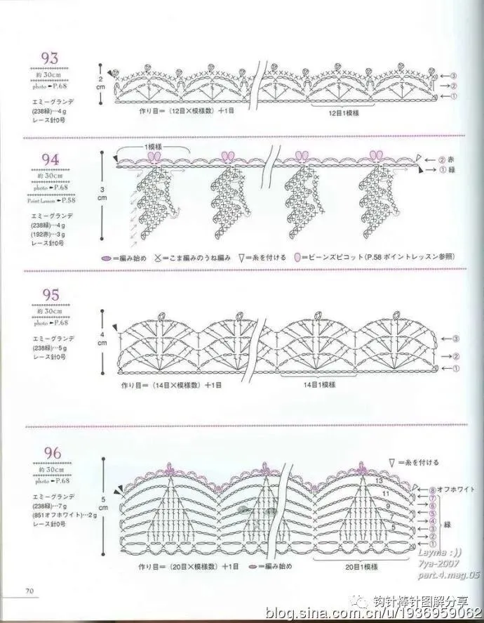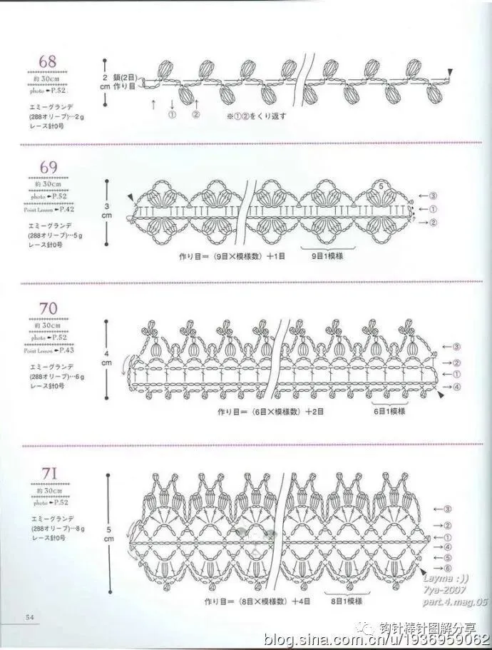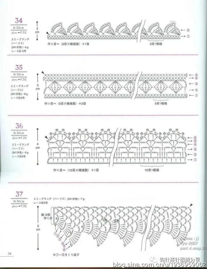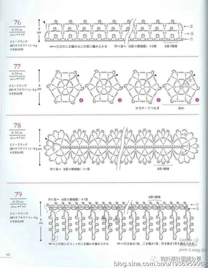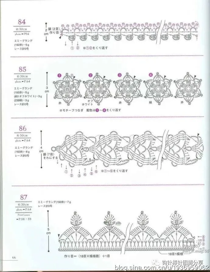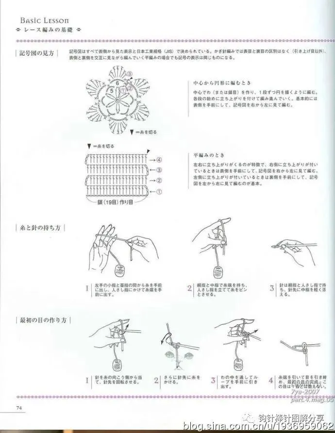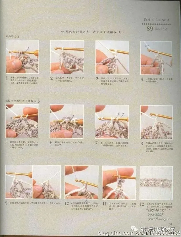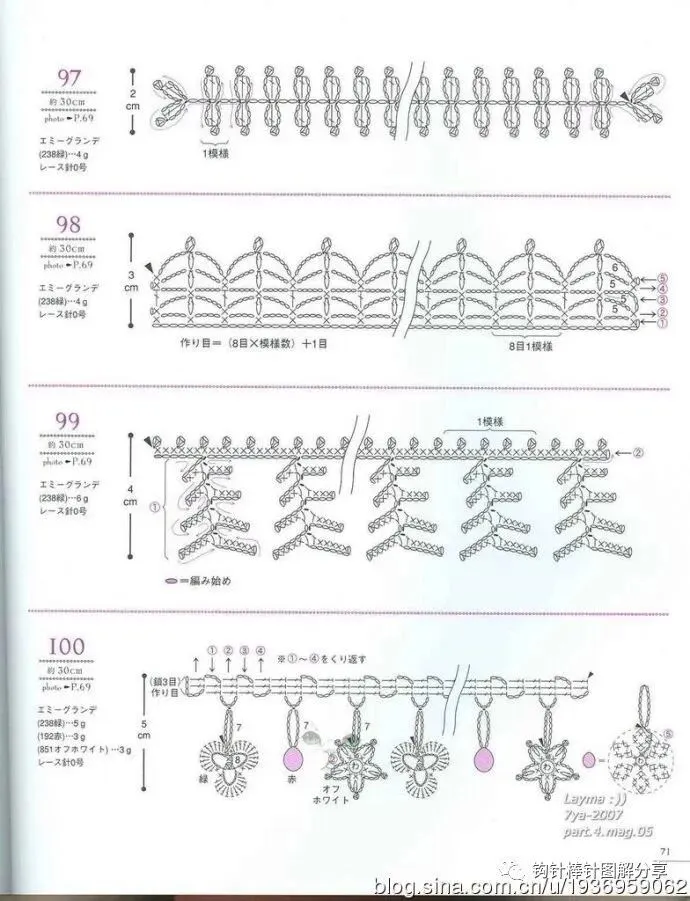 4、钩针图解一般分为图形图解和文字图解,初接触的常常会被各种钩针符号搞的头大,为了更好更快地看得懂各种图解,我整理了一下常用的钩针符号图解和文字图解的对照表,见文末,希望对你有所帮助。