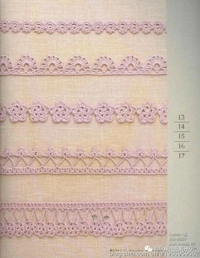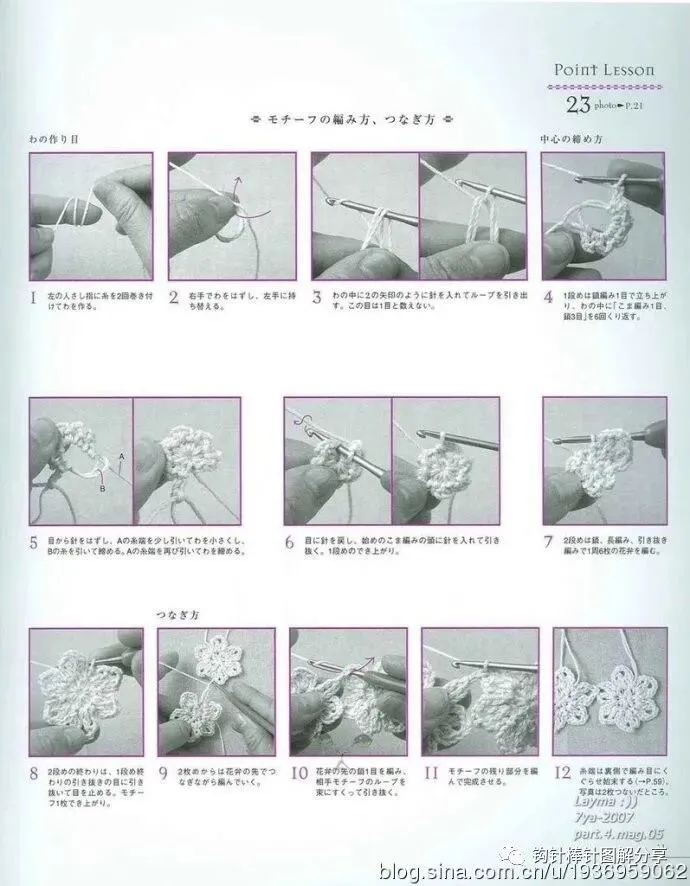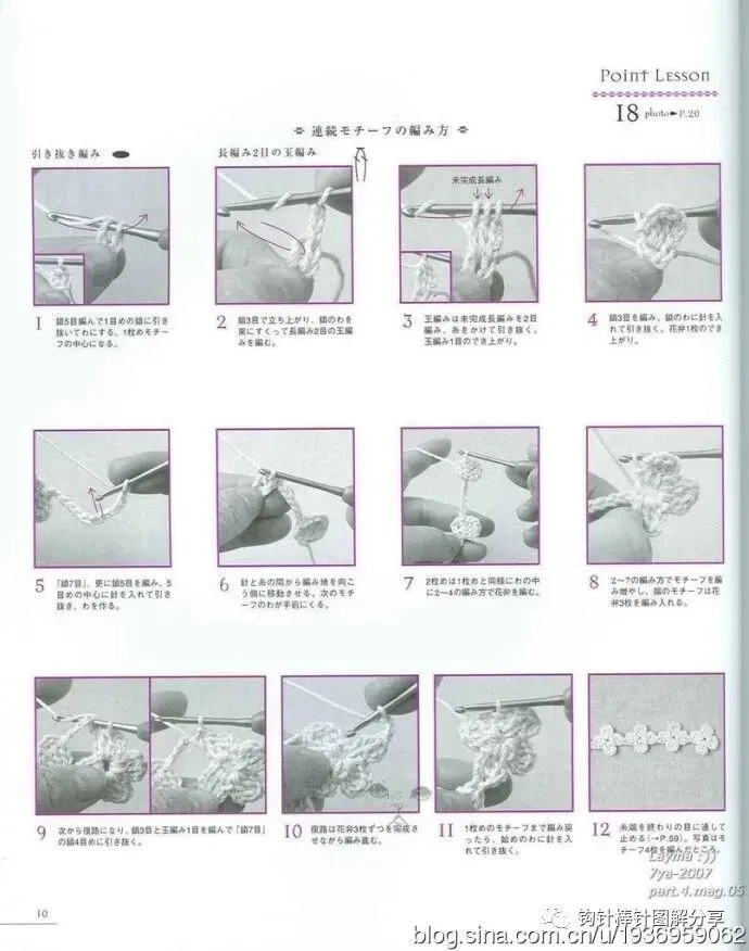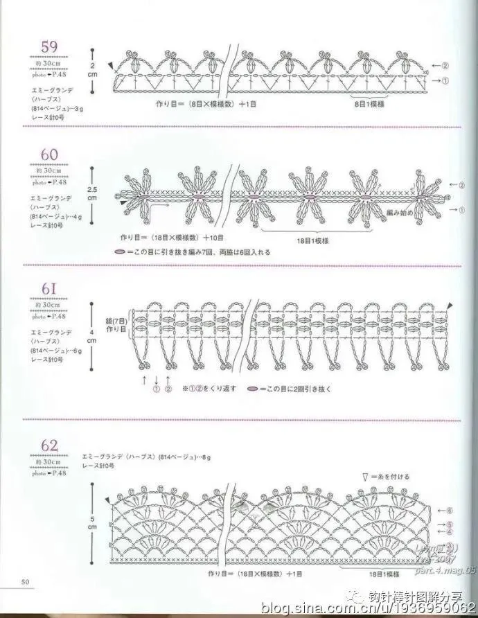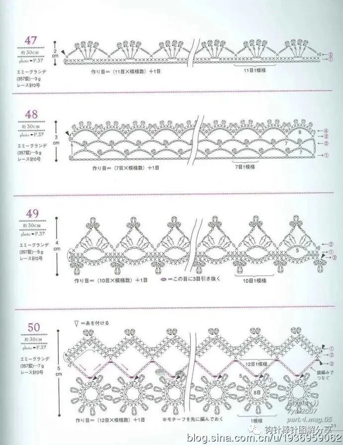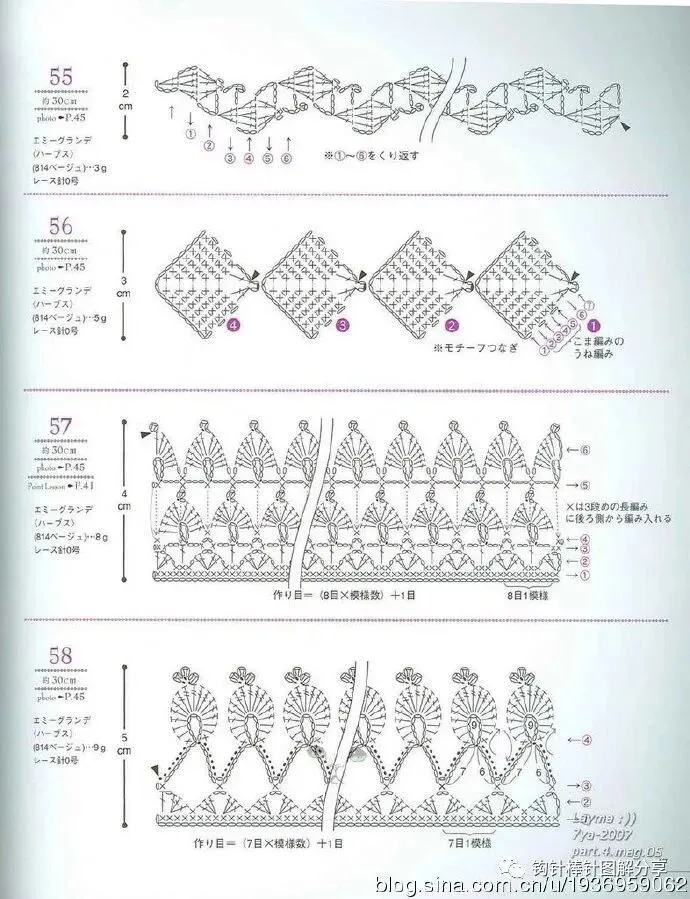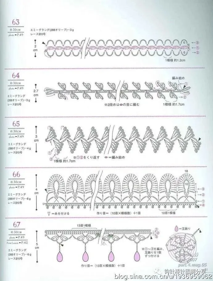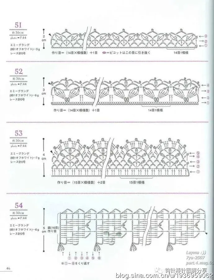 4、钩针图解一般分为图形图解和文字图解,初接触的常常会被各种钩针符号搞的头大,为了更好更快地看得懂各种图解,我整理了一下常用的钩针符号图解和文字图解的对照表,见文末,希望对你有所帮助。