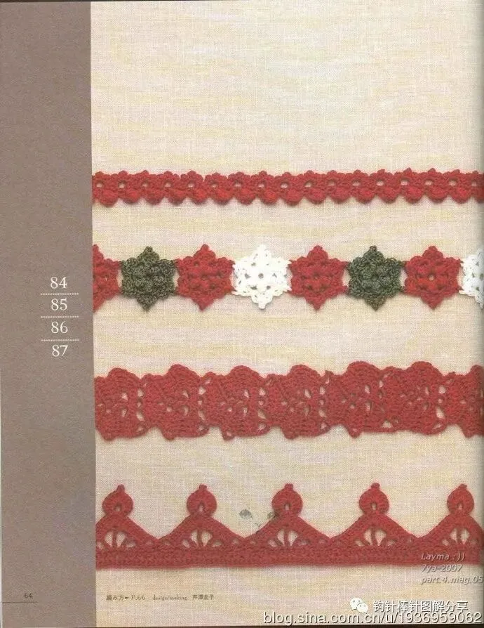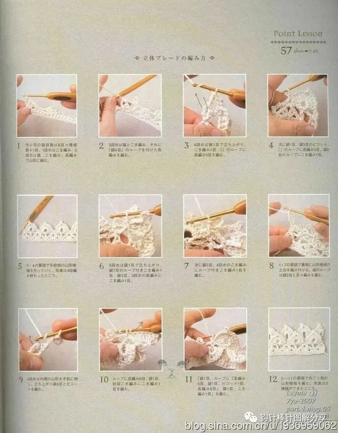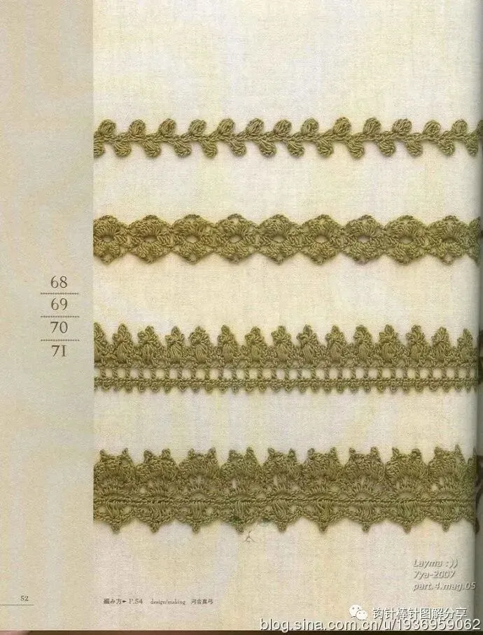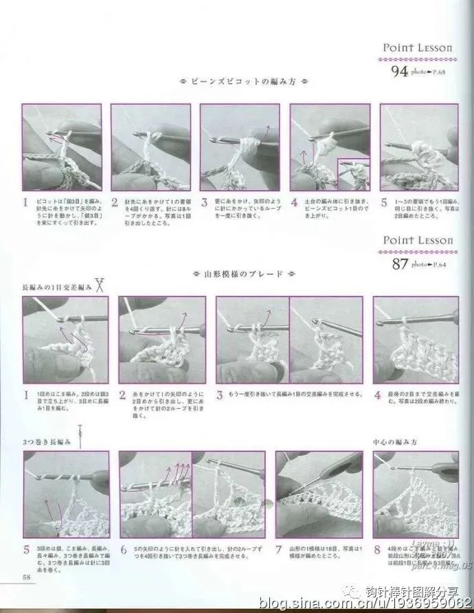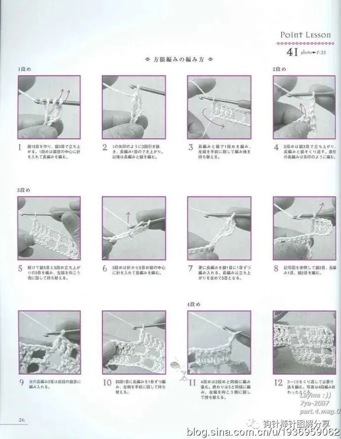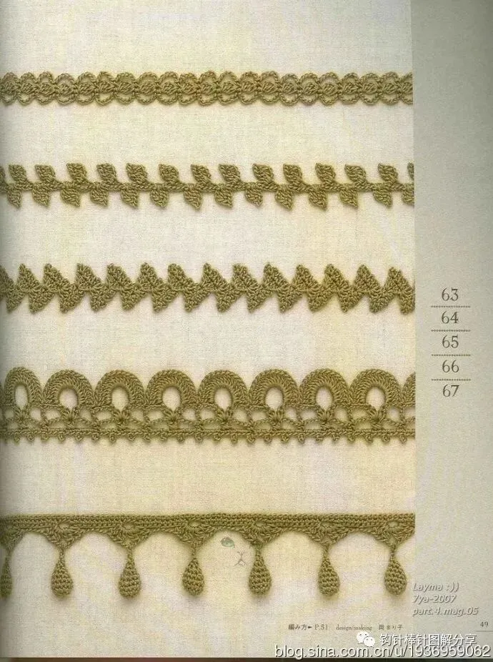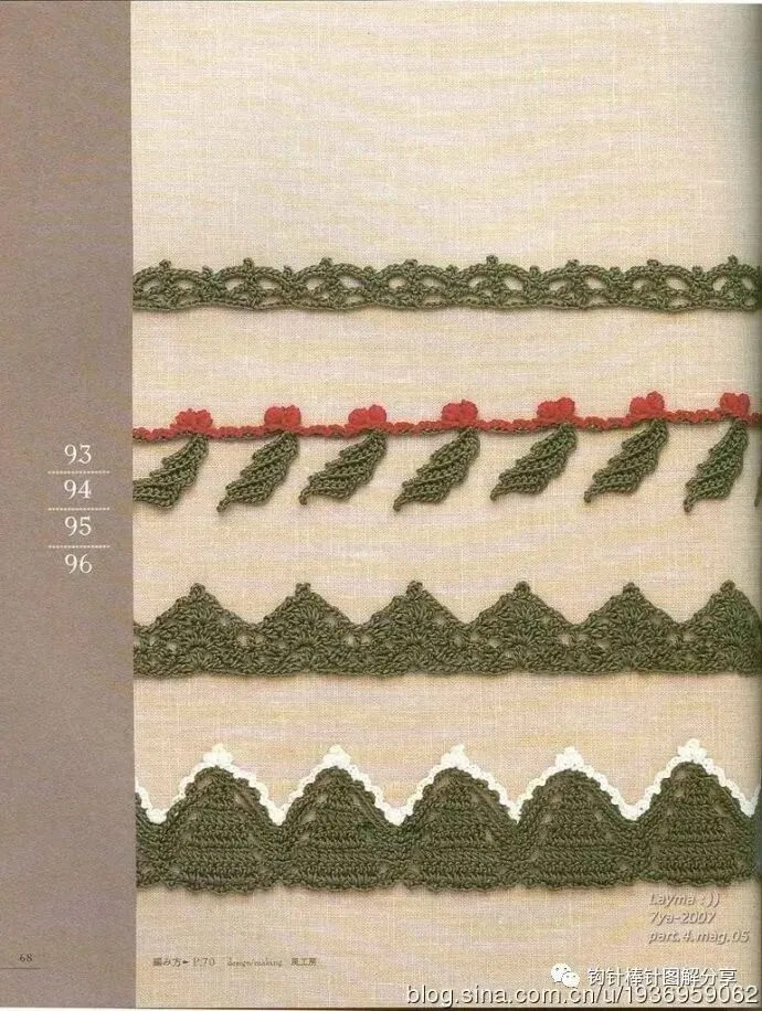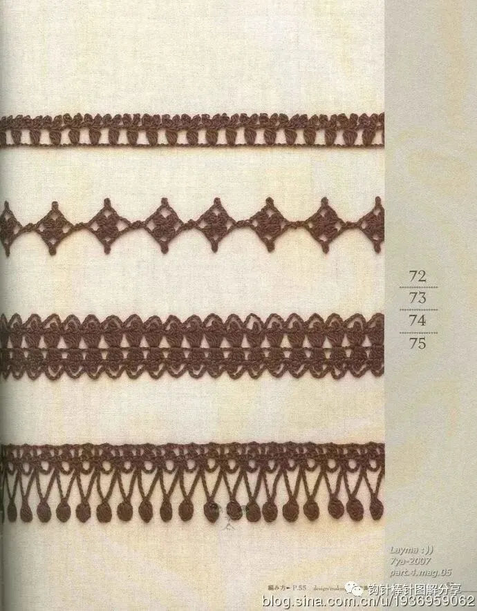 4、钩针图解一般分为图形图解和文字图解,初接触的常常会被各种钩针符号搞的头大,为了更好更快地看得懂各种图解,我整理了一下常用的钩针符号图解和文字图解的对照表,见文末,希望对你有所帮助。