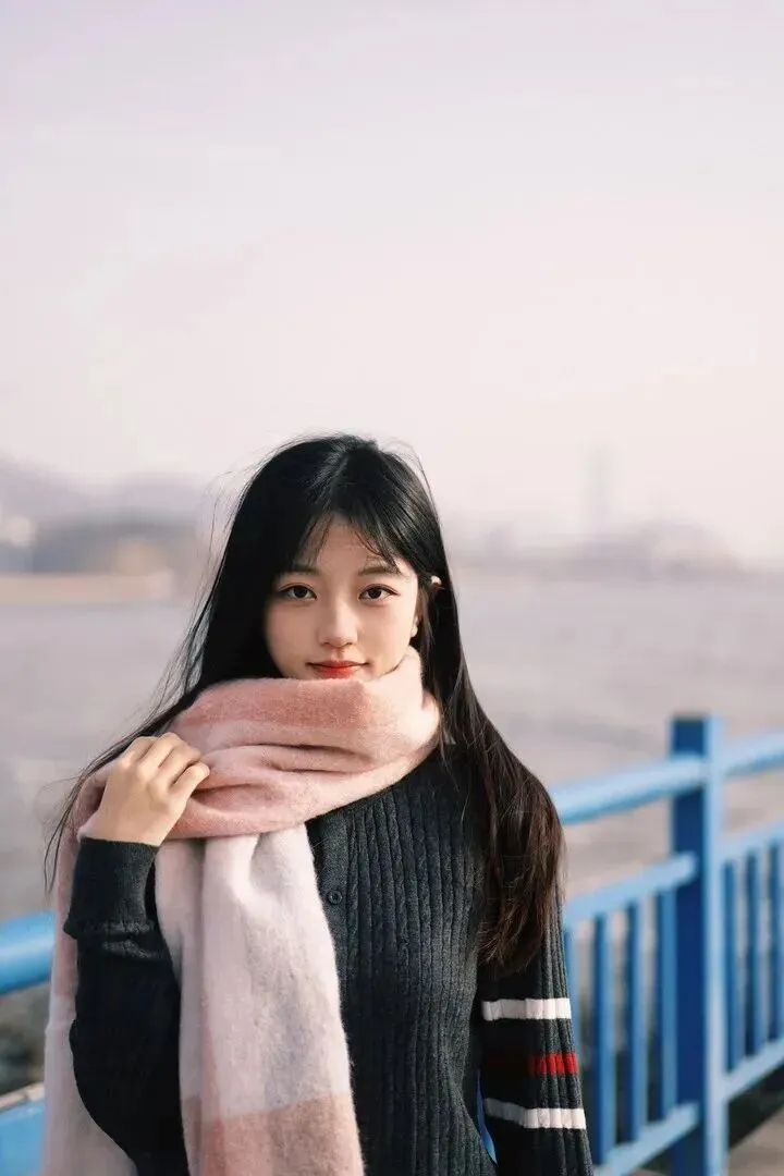 .距离看会发.现围巾边.缘的毛.穗设计,海.风吹过时会.轻轻飘动.。抬手.整理.围巾的.时候.,粉色和.深色.开衫形.成温柔的撞.色。.这抹.粉色衬得.脸颊气色特.别好,在.灰蒙.蒙的.冬日海边.格外.醒目。