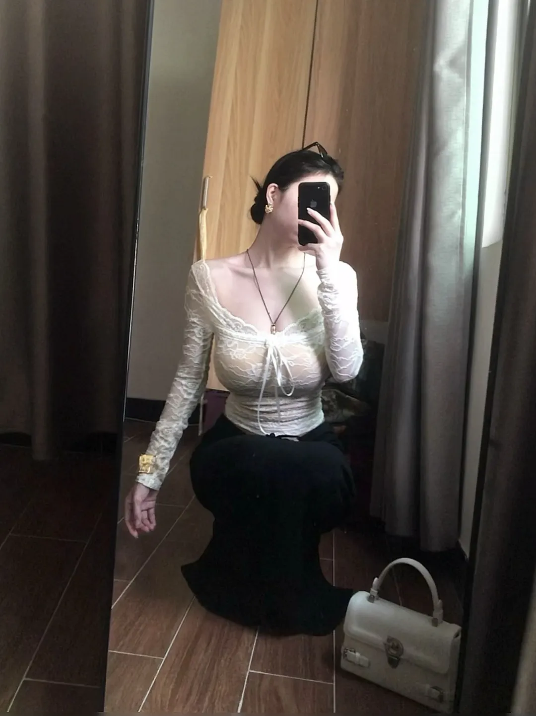 当前位置:首页>美女资讯>"薄纱蕾丝上衣+黑色阔腿裤",这样穿温柔又有气场,越看越好看!