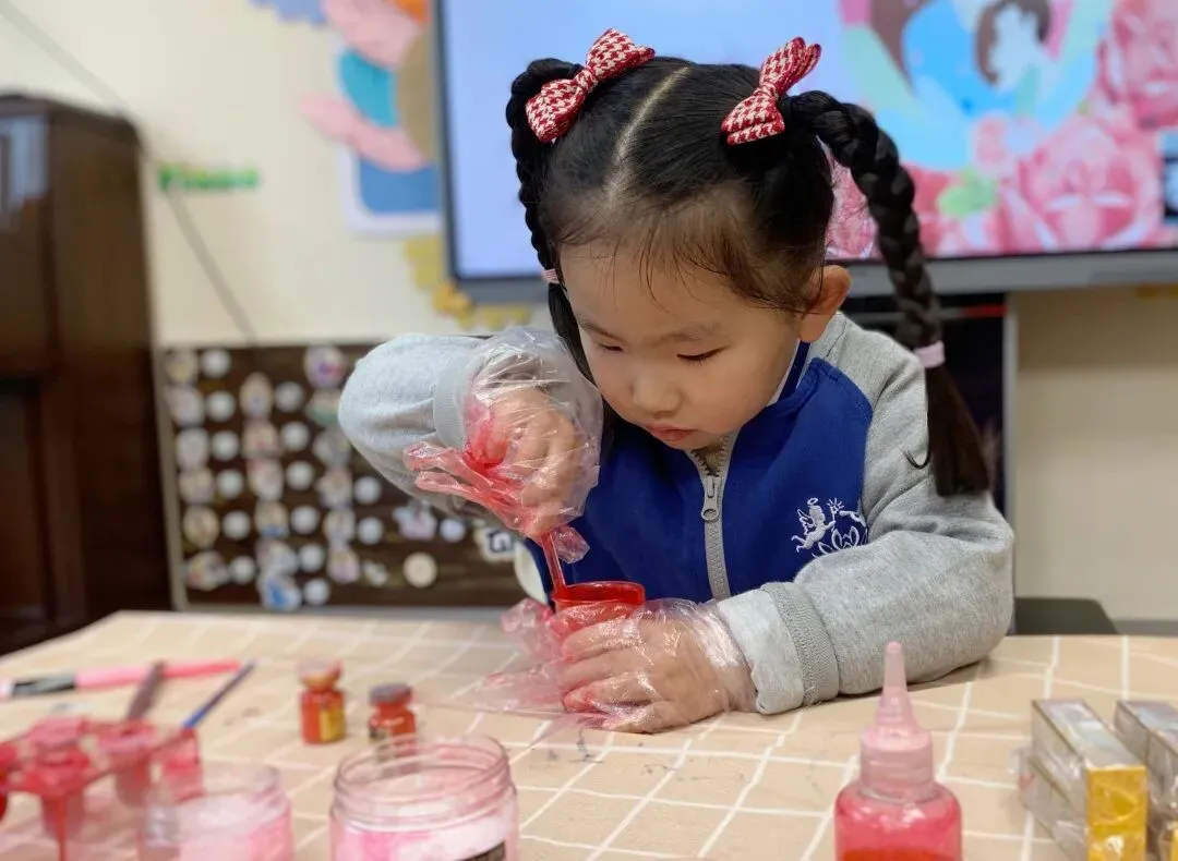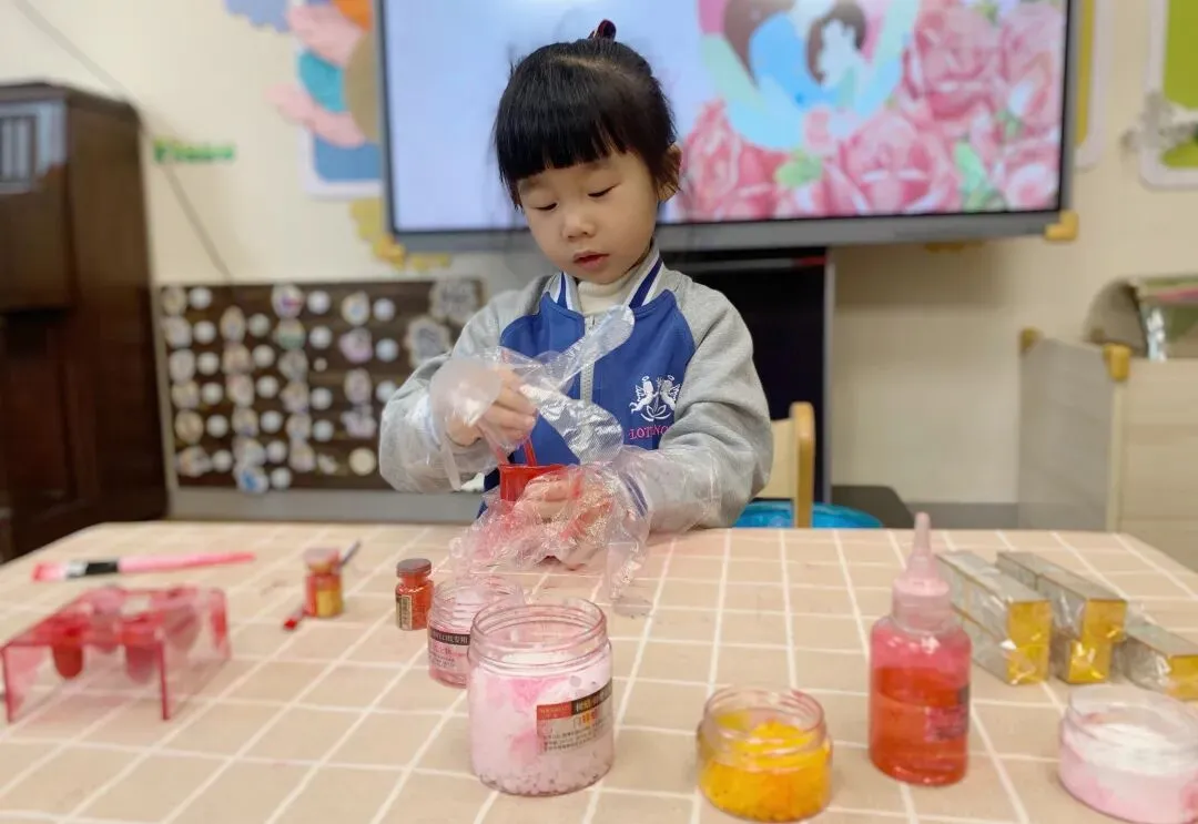 My mother's beauty is up to me. In a relaxed and pleasant atmosphere, the babies choose the color number for their mother, mix the essential oil, add the toner and beeswax in an orderly way, then heat, mold and solidify, and seriously make the exclusive lipstick of the goddesses. From the choice of color to mold shaping, the babies are meticulously carving their own "works".