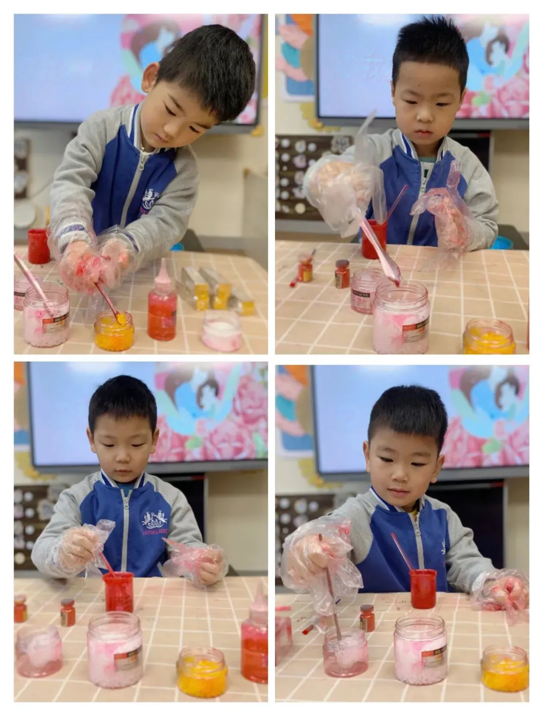 妈妈的美丽我做主,在轻松愉快的氛围中,宝贝们为妈妈挑选色号,调配精油,有条不紊地加色粉、蜂蜡,而后加热、入模、凝固,认真地制作女神们的专属口红。从选择颜色到模具定型,宝贝们一丝不苟地雕琢着自己的“作品”。