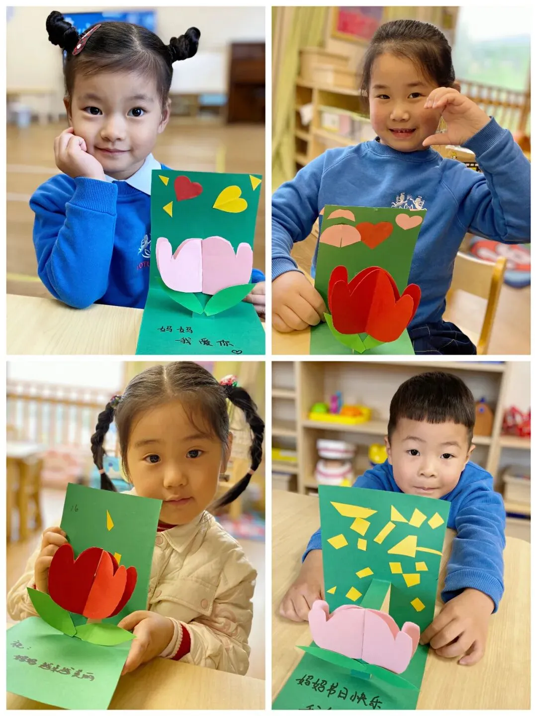 因“爱”而温暖,因“爱”而精彩,悠悠童心,欲报春晖,在这春日里甜蜜着,陶醉着。宝贝们亲手制作的贺卡,每一片花瓣,每一句祝福,蕴藏着他们对妈妈最热烈的爱。