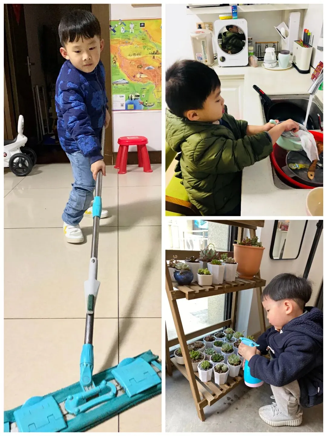 宝贝们用稚嫩的小手洗碗、擦桌、扫地,给妈妈端茶、按摩、洗脚......做力所能及的事情。小小的行动,在孩子们心灵洒下爱的种子,学会感恩和关爱、学会付出和给予、懂得孝顺和珍惜。