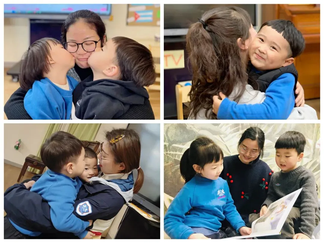 Kisses and hugs for teachers: the teacher is a good mother for the babies in the kindergarten. When parents take their children's hands and go with the wind, the other hand will be led by the teacher to ride the wind and waves. Let's kiss and hug the teachers together.